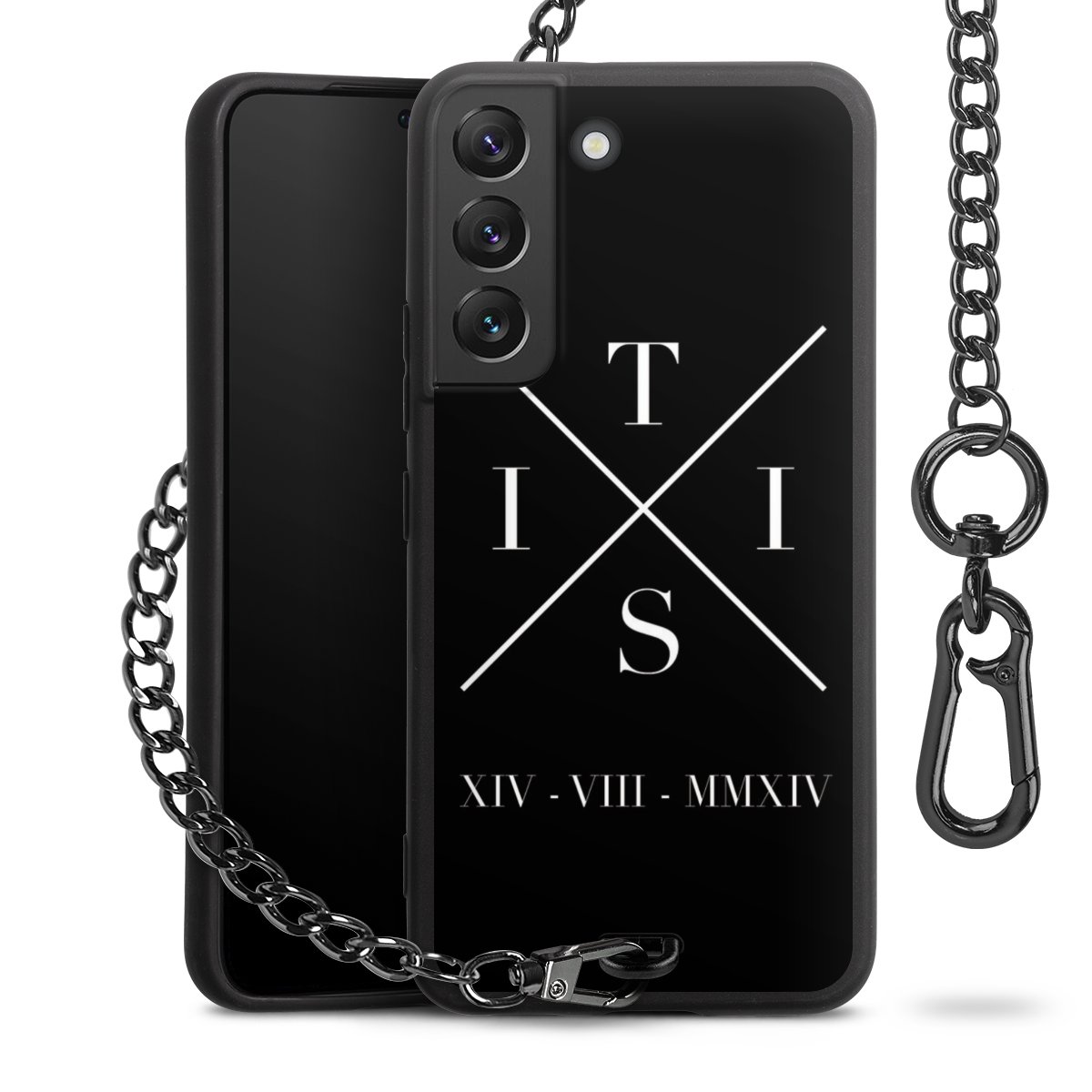 • Mattschwarze Handyhülle mit Metallkette