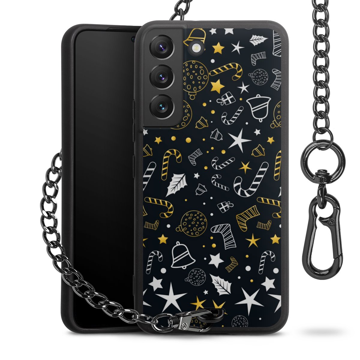 - Mattschwarze Handyhülle mit Metallkette