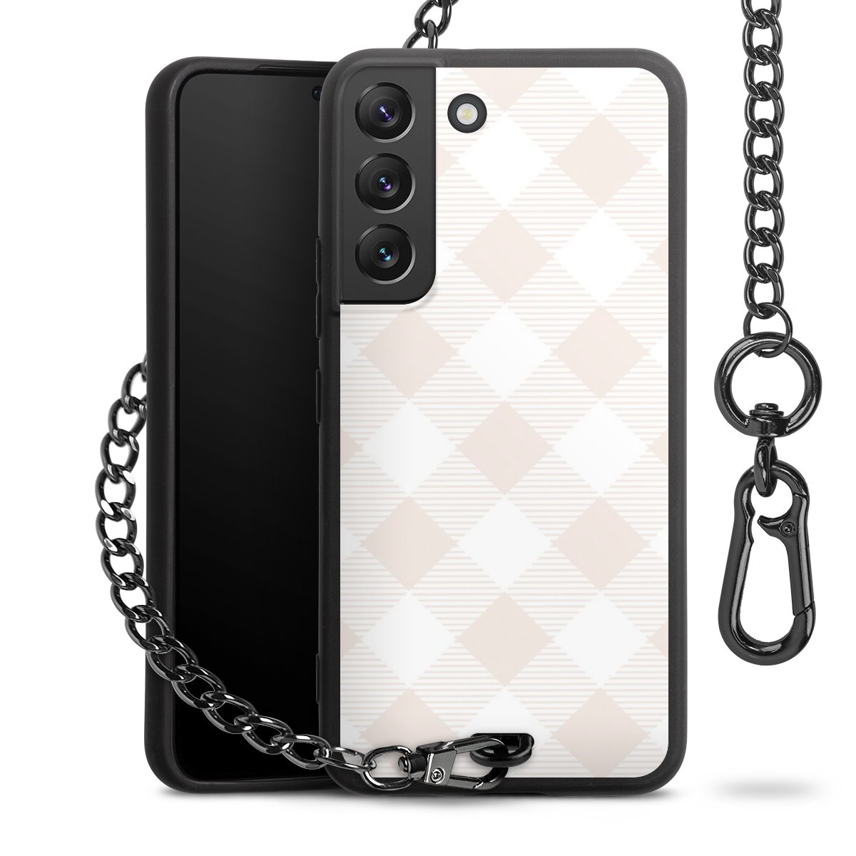 • Mattschwarze Handyhülle mit Metallkette