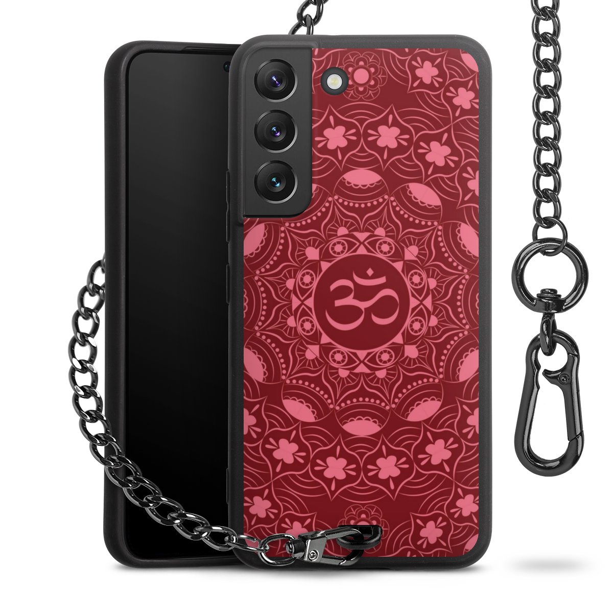 - Mattschwarze Handyhülle mit Metallkette