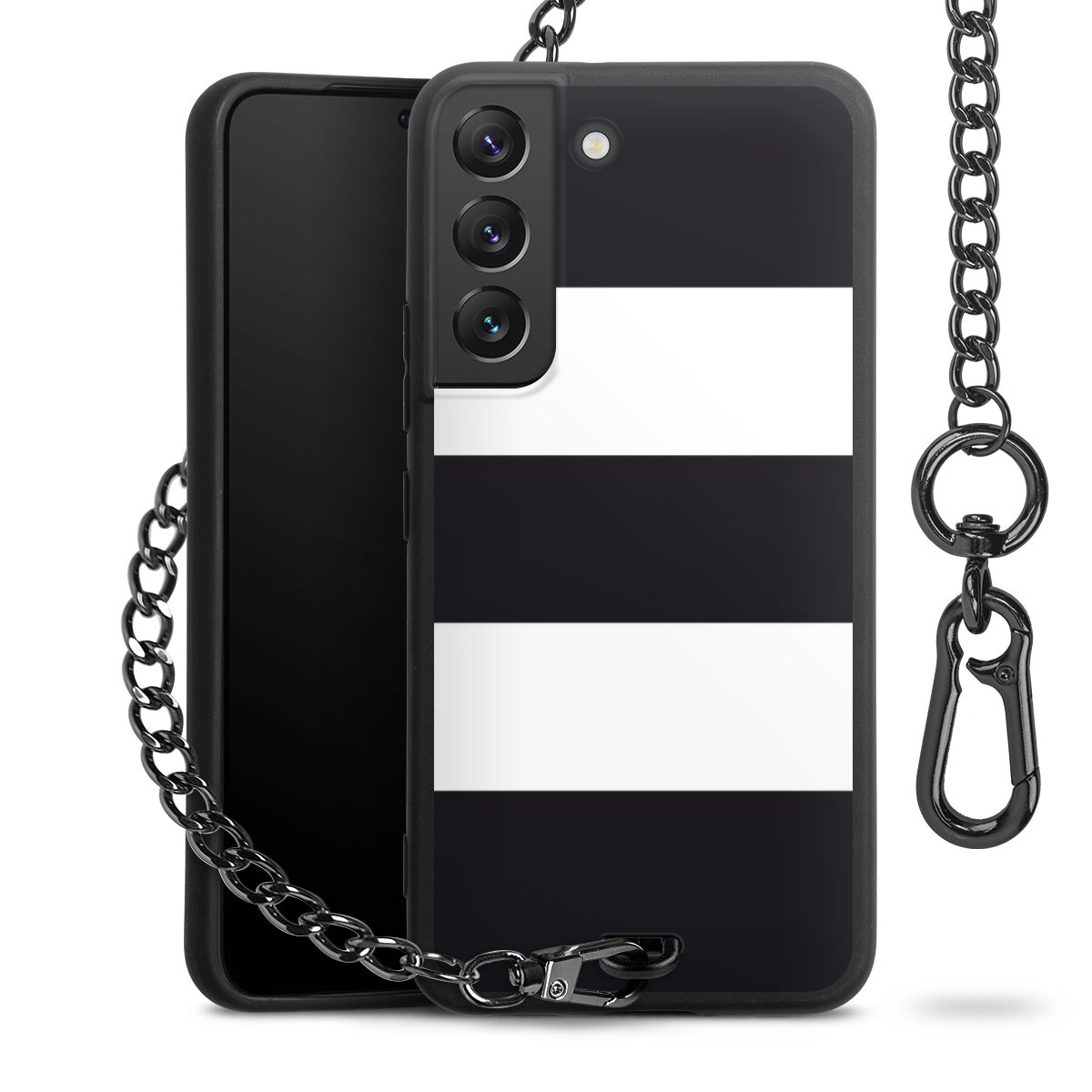 - Mattschwarze Handyhülle mit Metallkette