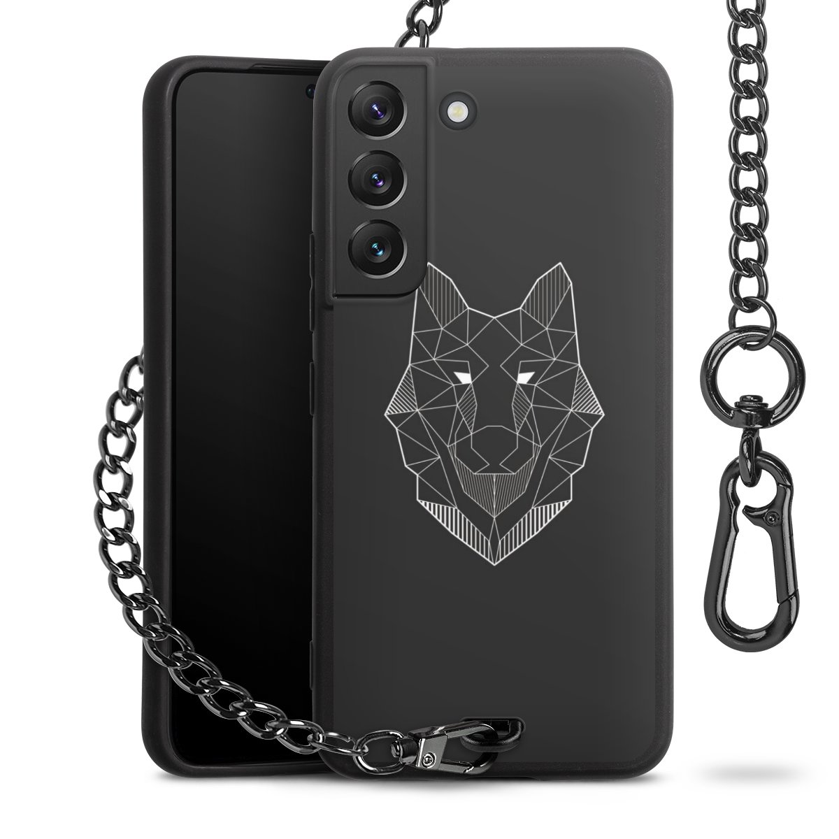 - Mattschwarze Handyhülle mit Metallkette