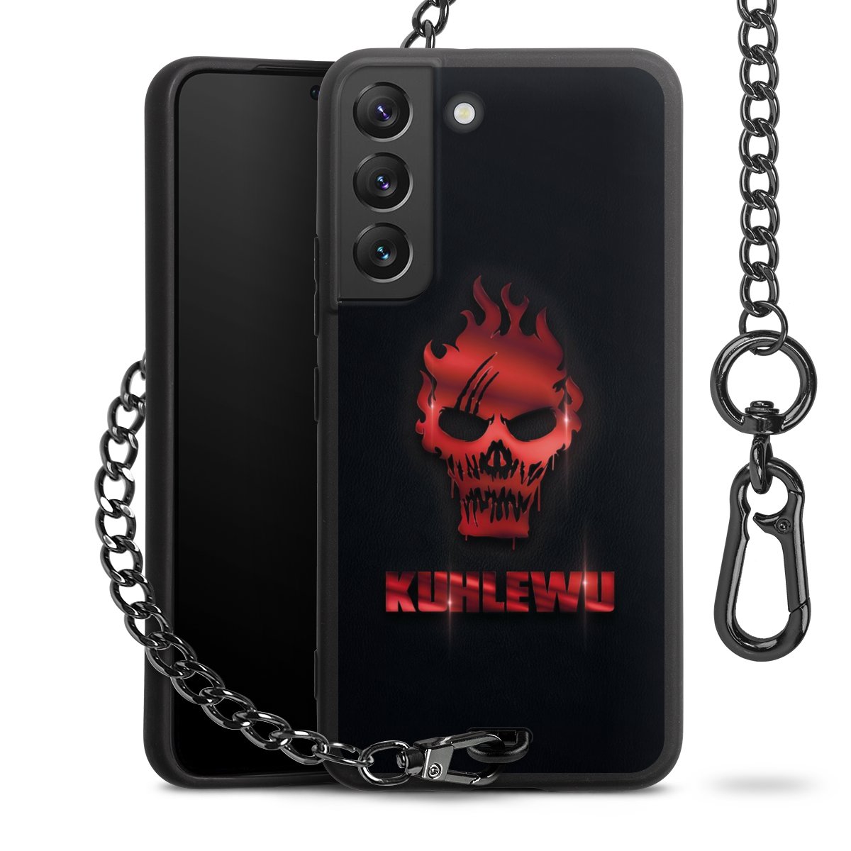 • Mattschwarze Handyhülle mit Metallkette
