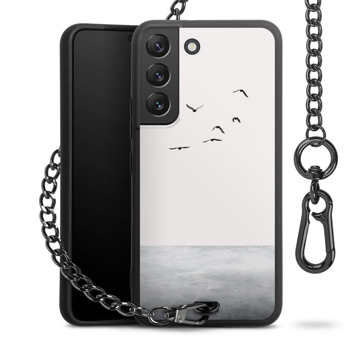 • Mattschwarze Handyhülle mit Metallkette