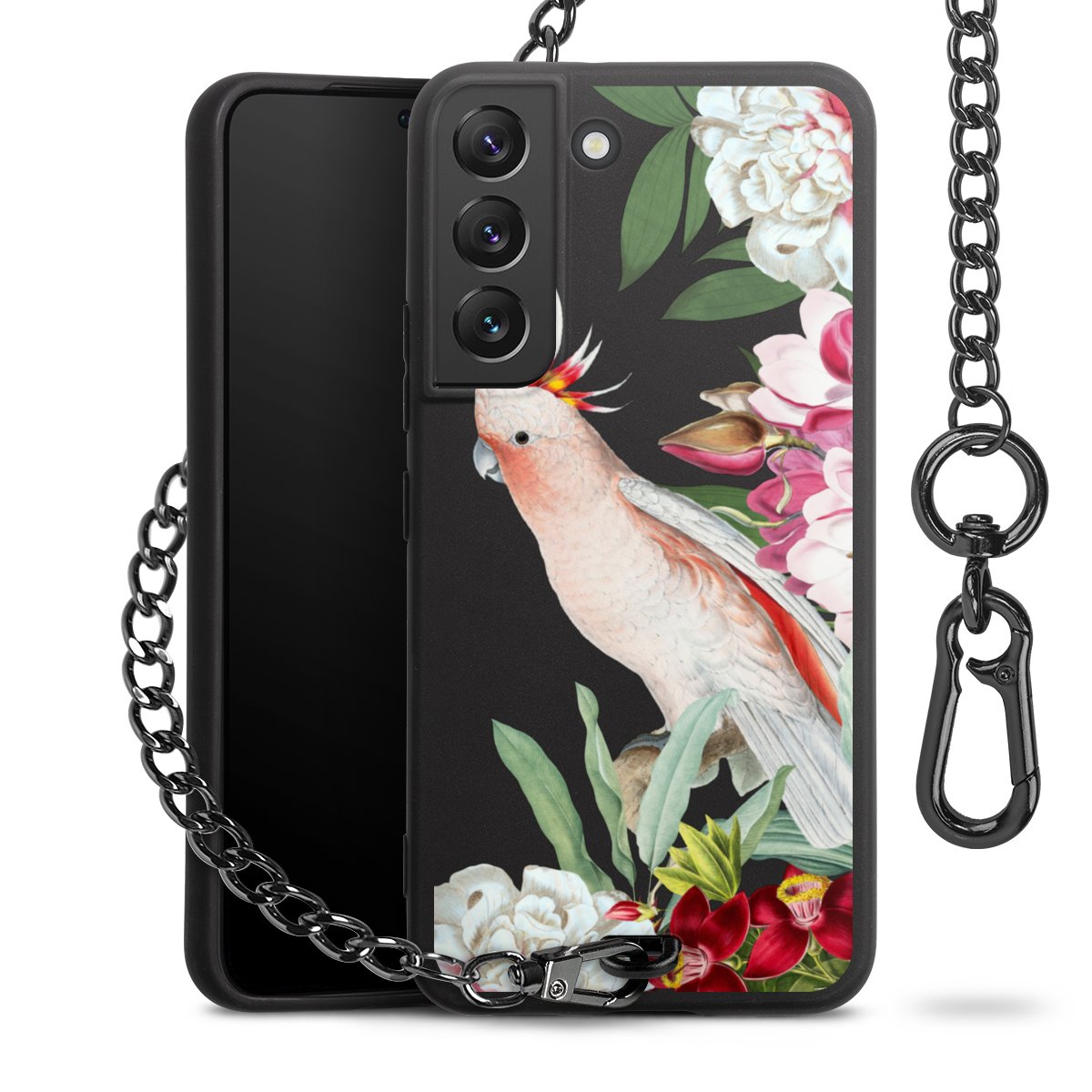 • Mattschwarze Handyhülle mit Metallkette