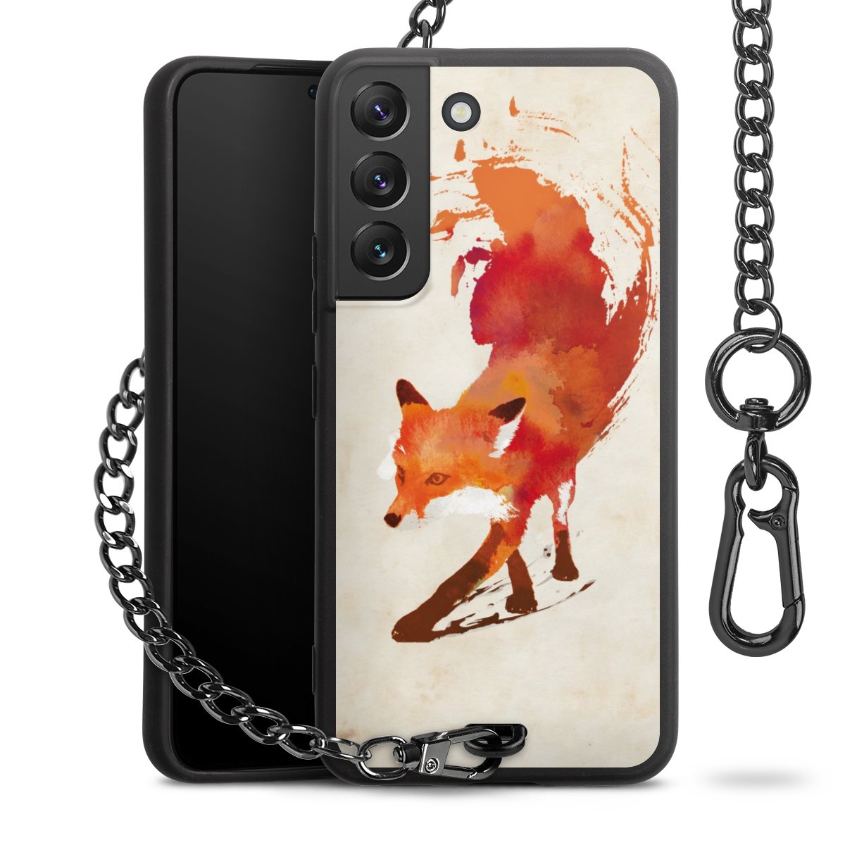 • Mattschwarze Handyhülle mit Metallkette