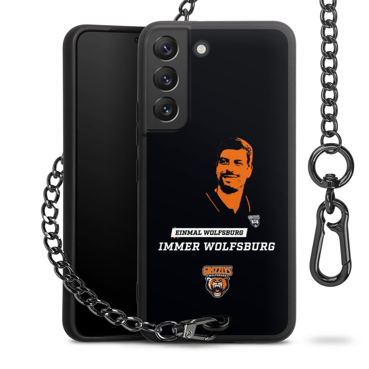 - Mattschwarze Handyhülle mit Metallkette