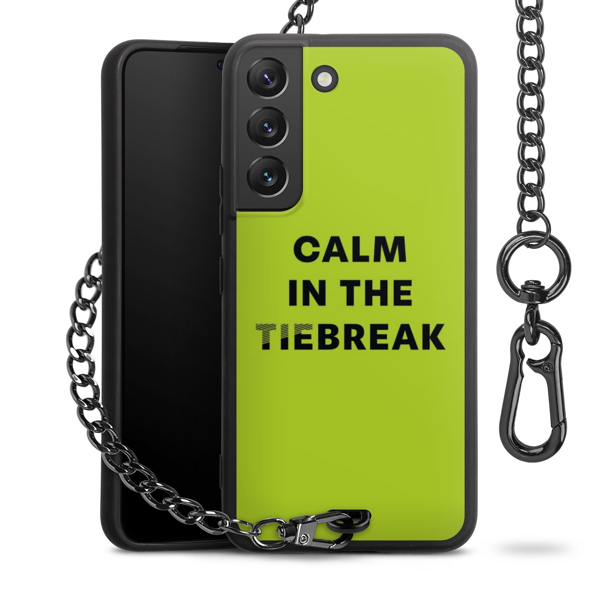 - Mattschwarze Handyhülle mit Metallkette