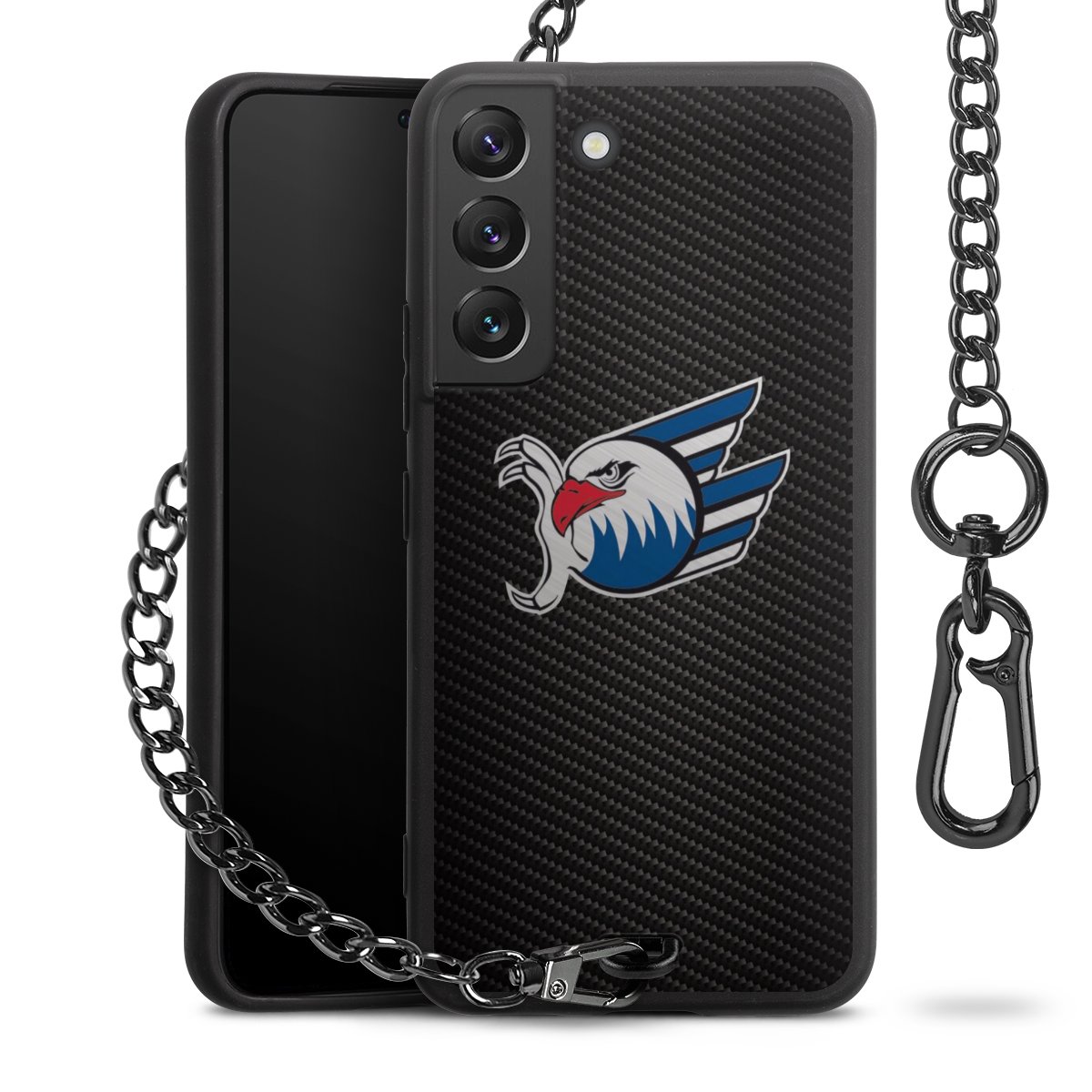 • Mattschwarze Handyhülle mit Metallkette