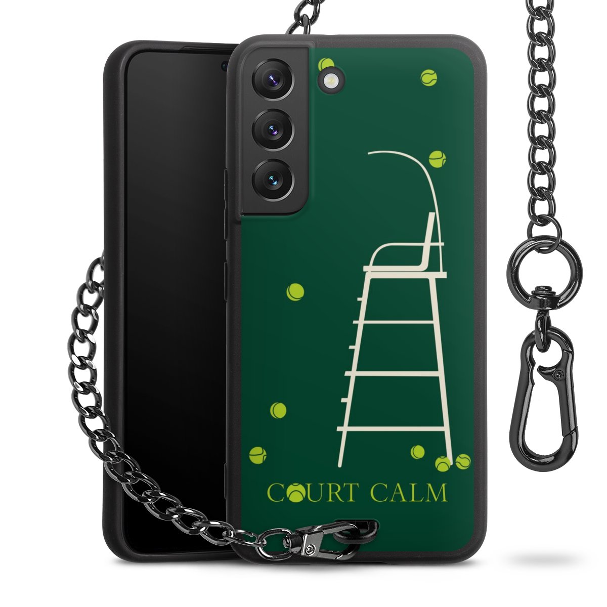 - Mattschwarze Handyhülle mit Metallkette