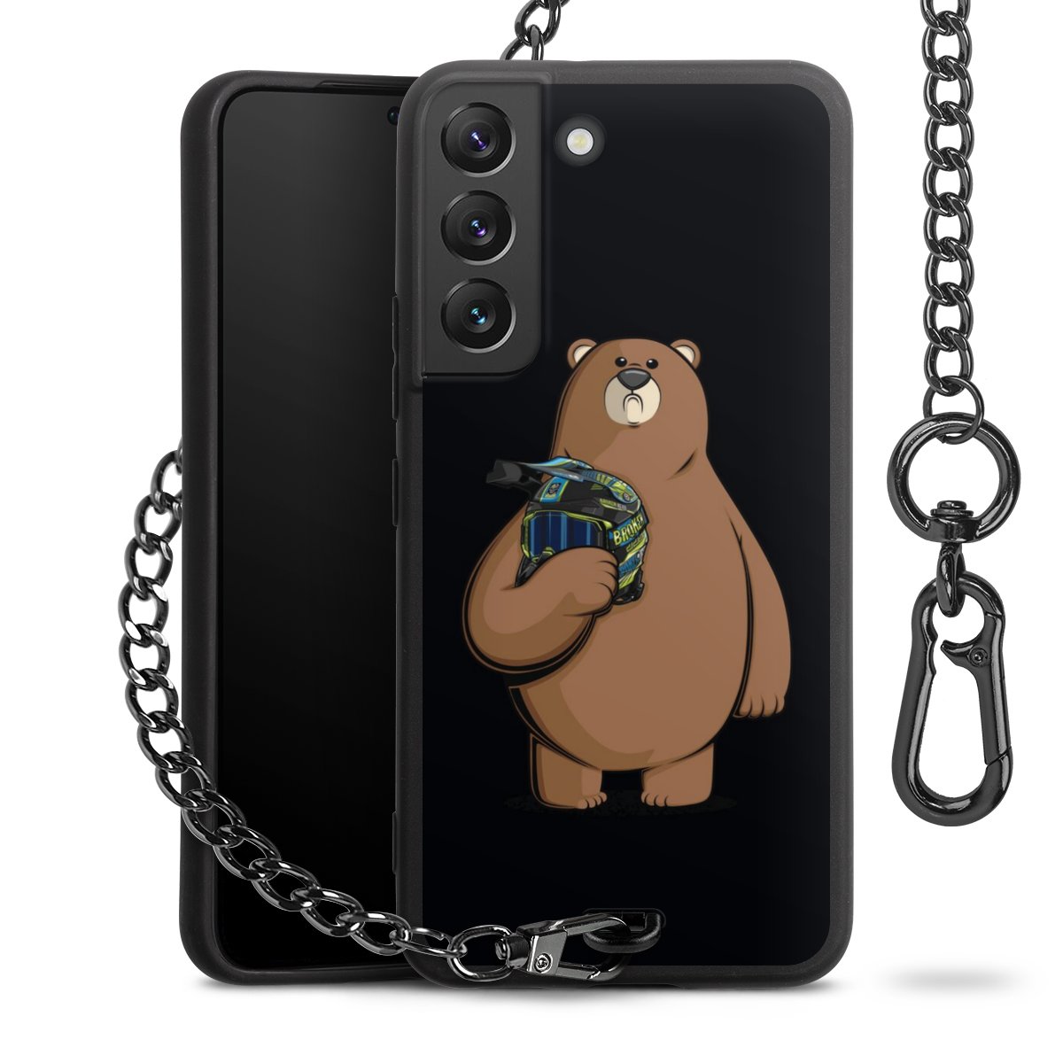 • Mattschwarze Handyhülle mit Metallkette