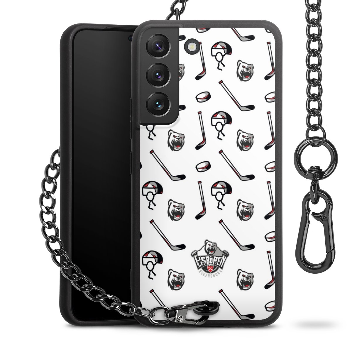- Mattschwarze Handyhülle mit Metallkette