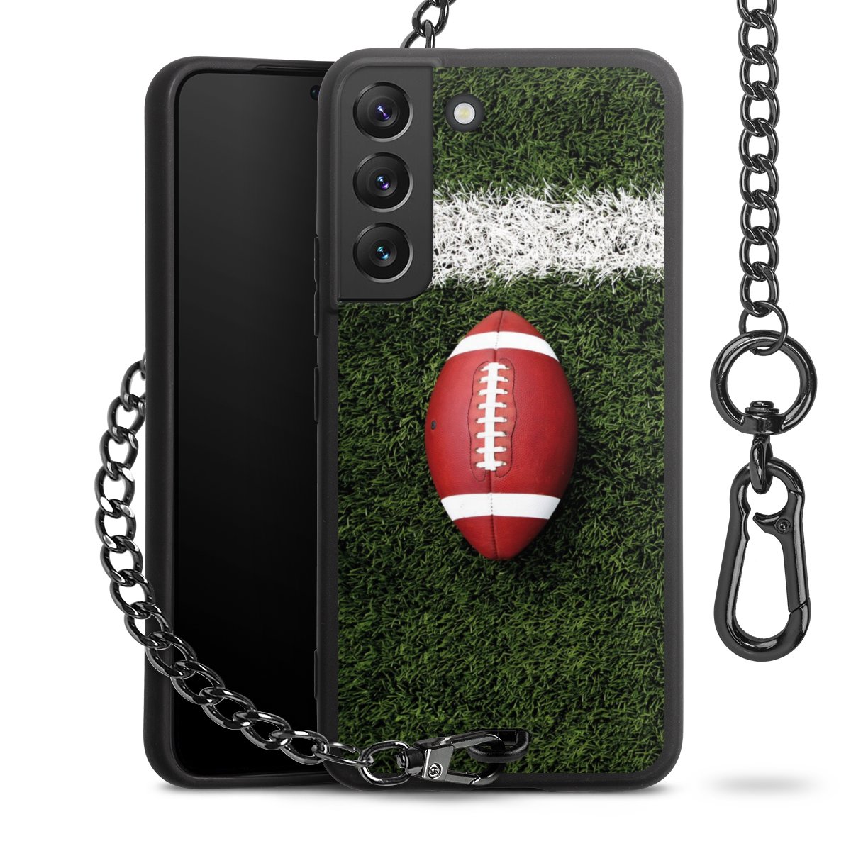 - Mattschwarze Handyhülle mit Metallkette