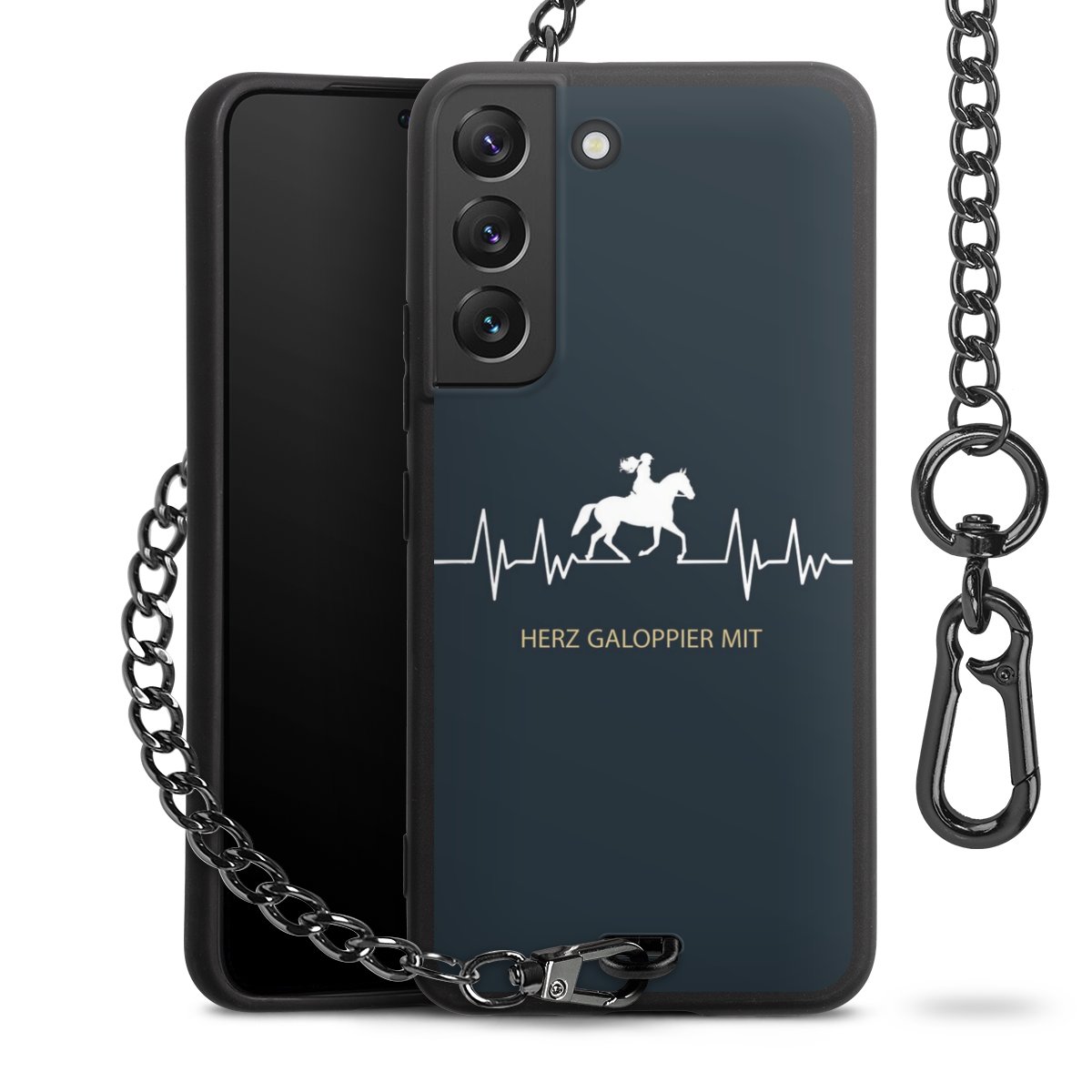 - Mattschwarze Handyhülle mit Metallkette