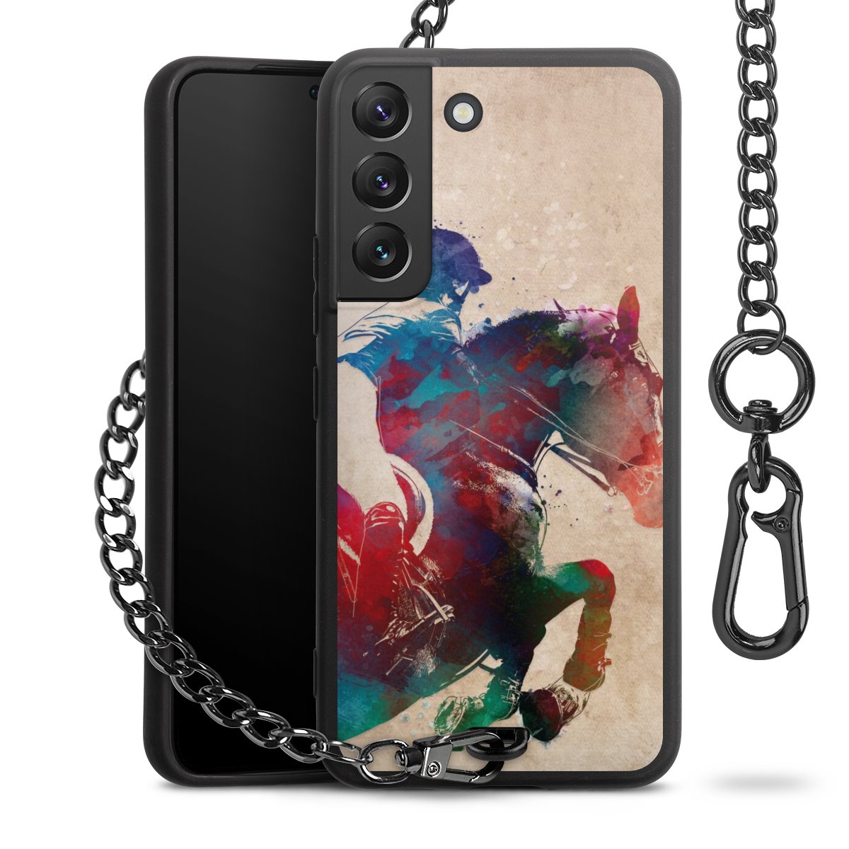 • Mattschwarze Handyhülle mit Metallkette