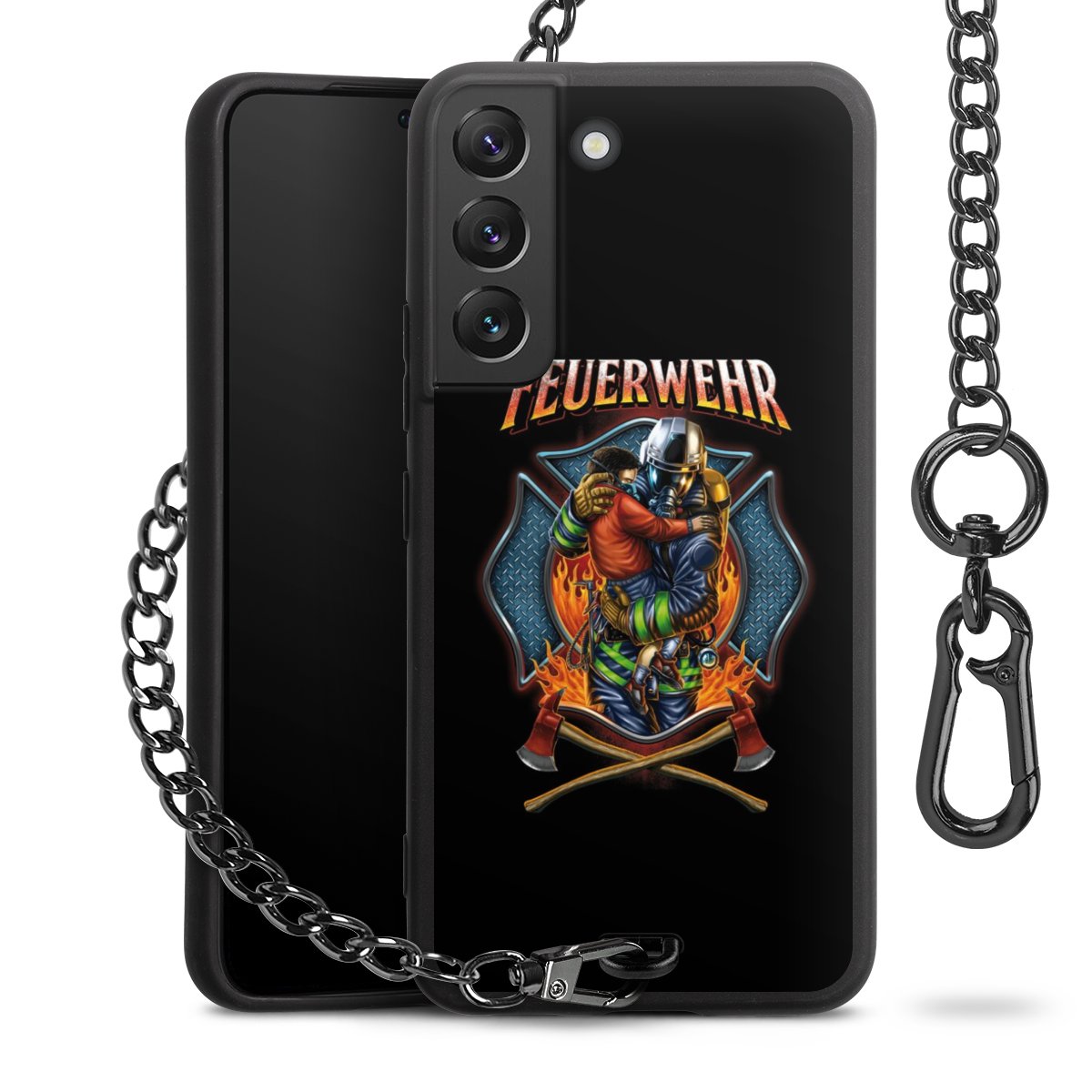 • Mattschwarze Handyhülle mit Metallkette
