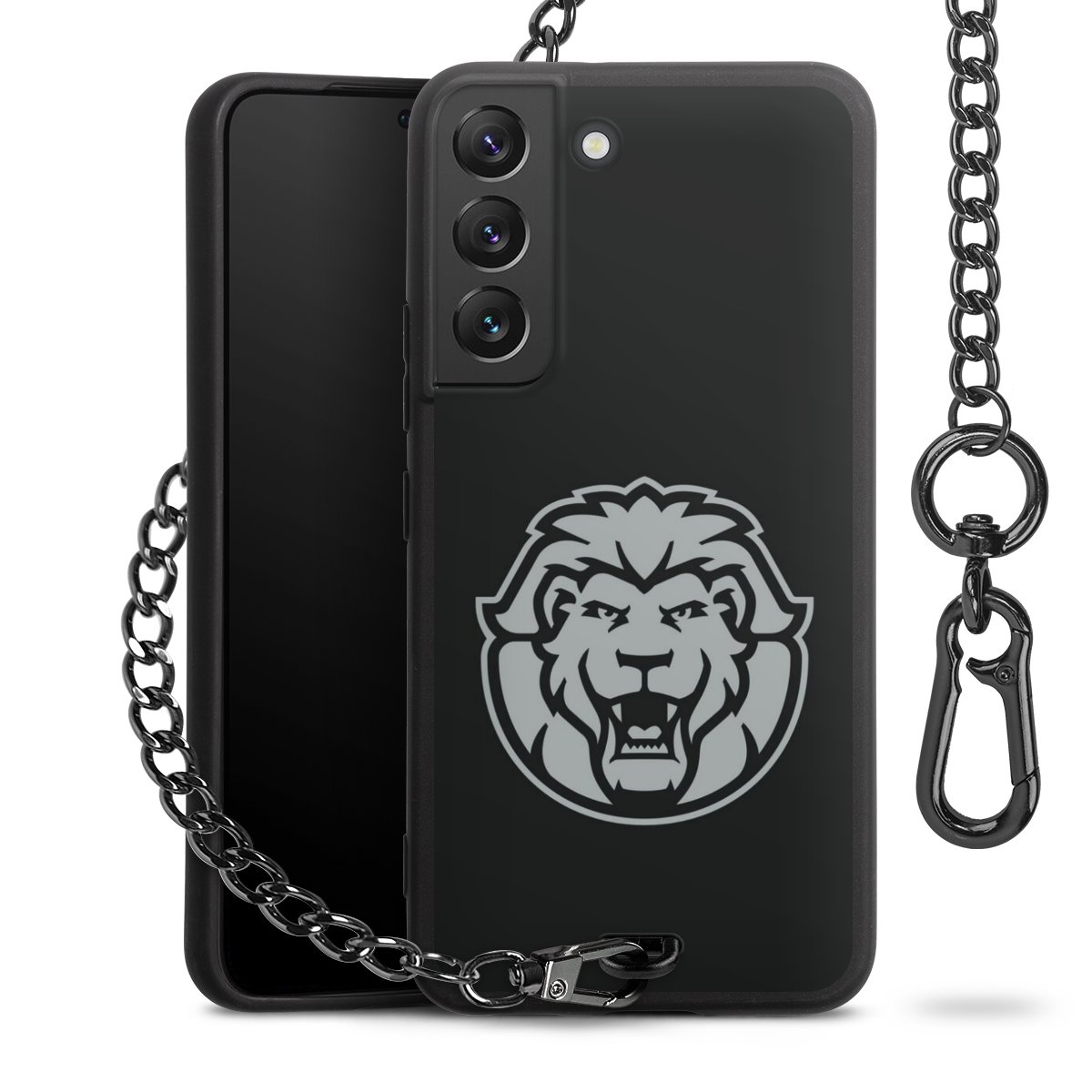 - Mattschwarze Handyhülle mit Metallkette