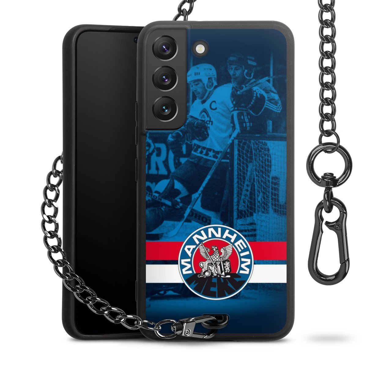 • Mattschwarze Handyhülle mit Metallkette