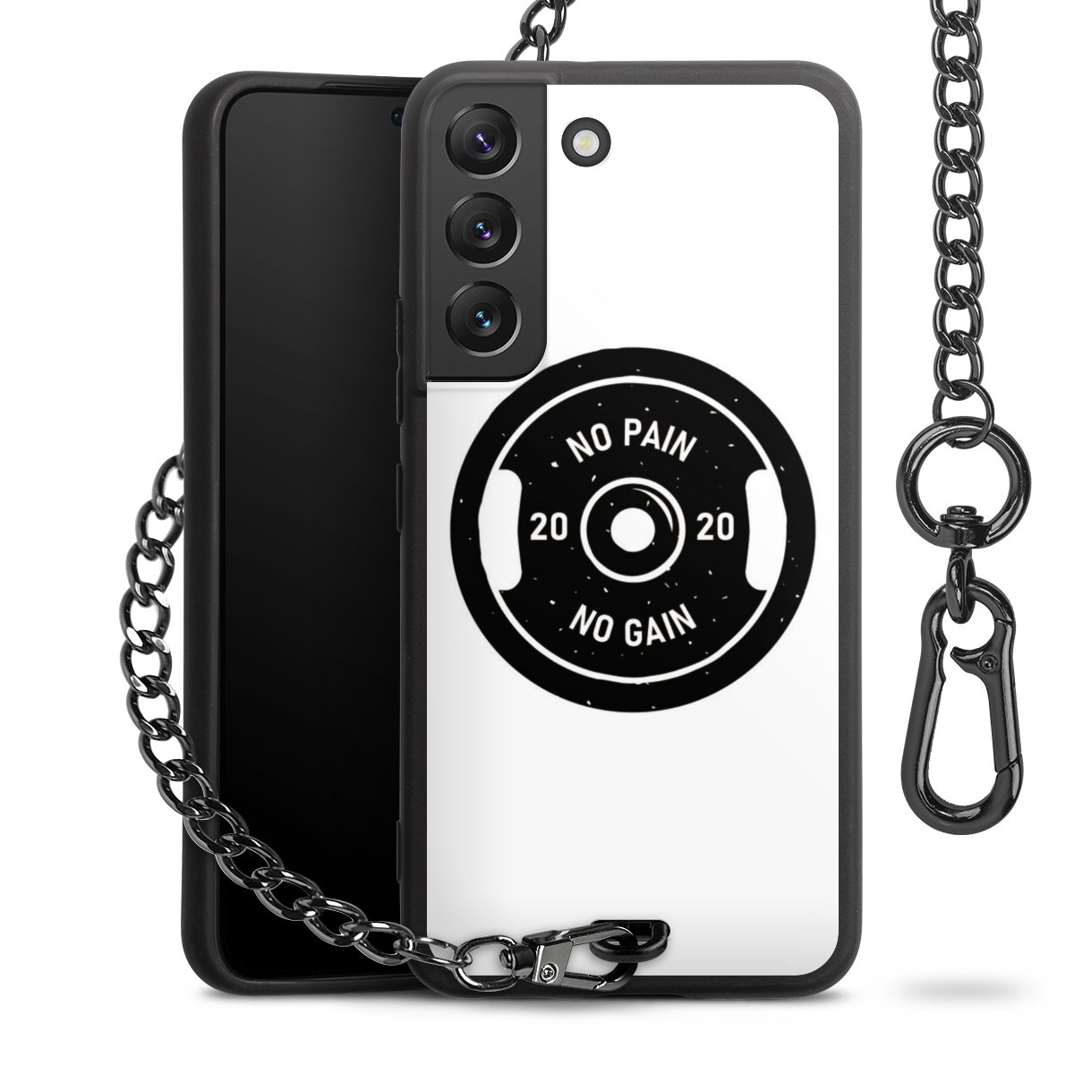 Die mattschwarze Silikon-Handyhülle besteht aus robustem TPU (thermoplastisches Polyurethan). Sie ist flexibel und schützt Dein Smartphone vor Stößen und Kratzern. Die Kette sowie der Karabinerhaken sind aus Metall in Gunmetal-Optik gefertigt. Für dieses Produkt kommen ausschließlich TÜV-geprüfte Materialien zum Einsatz.