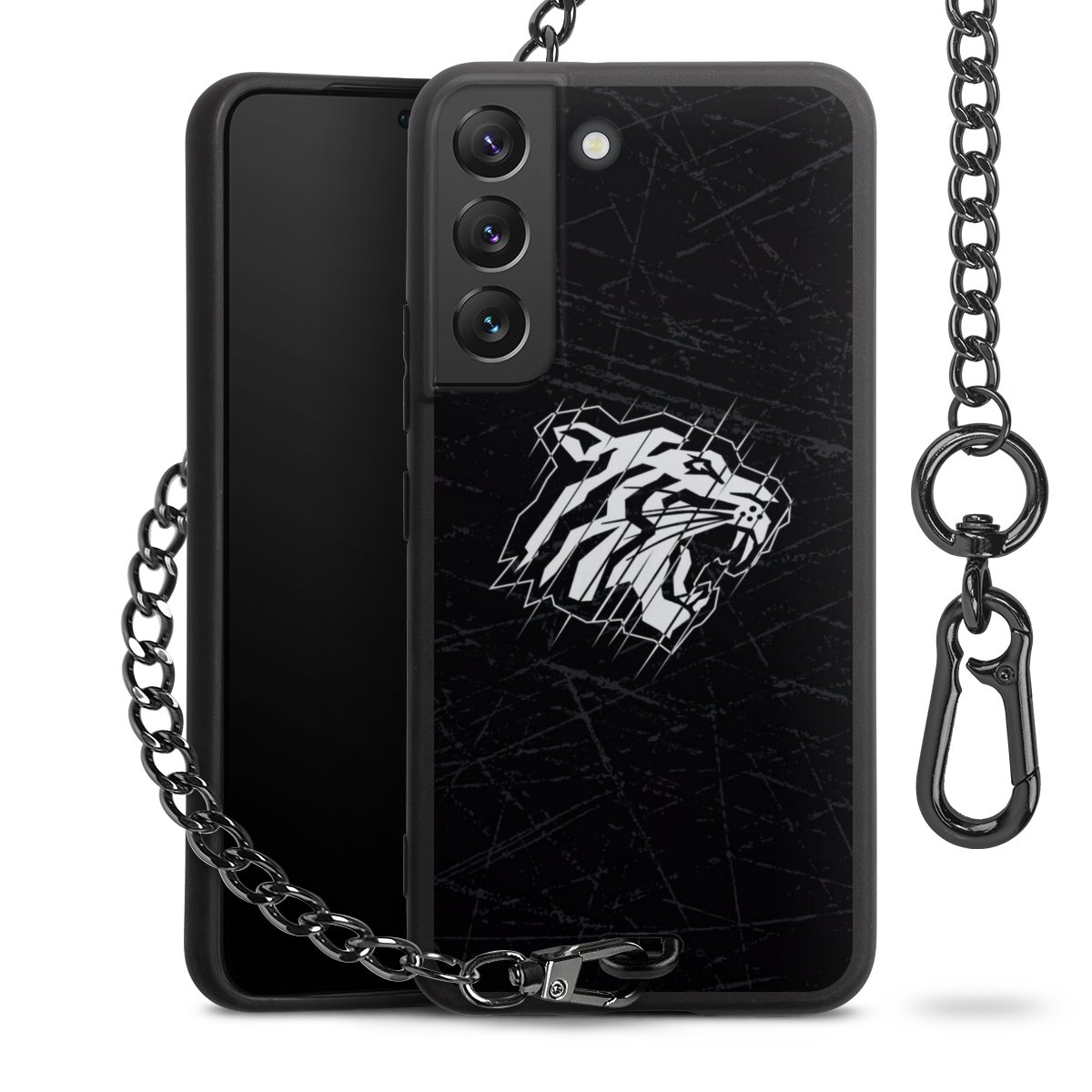 - Mattschwarze Handyhülle mit Metallkette