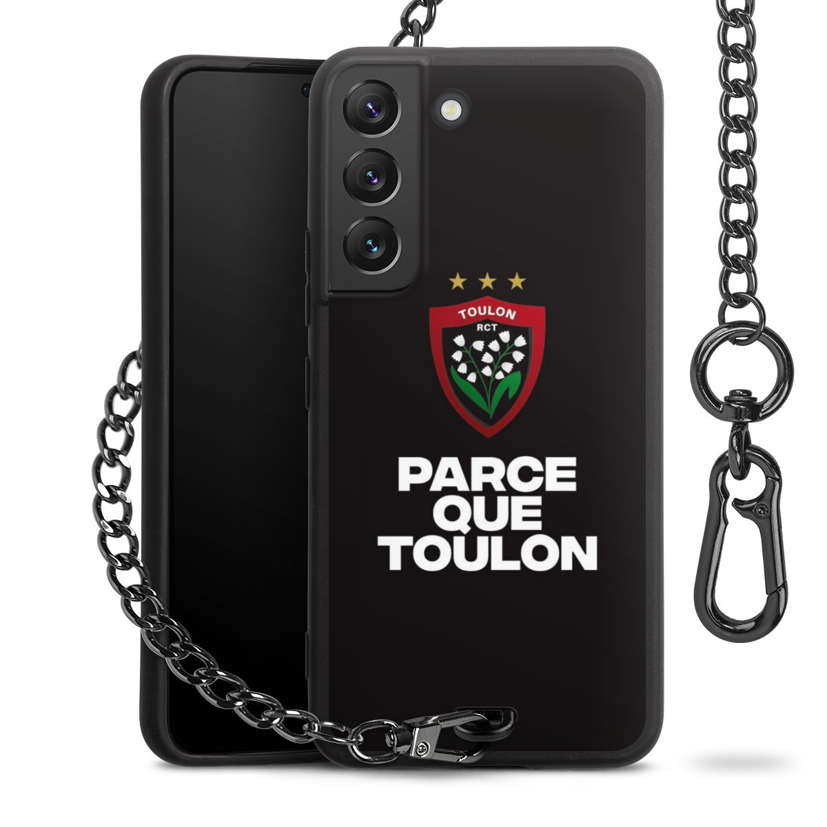 - Mattschwarze Handyhülle mit Metallkette