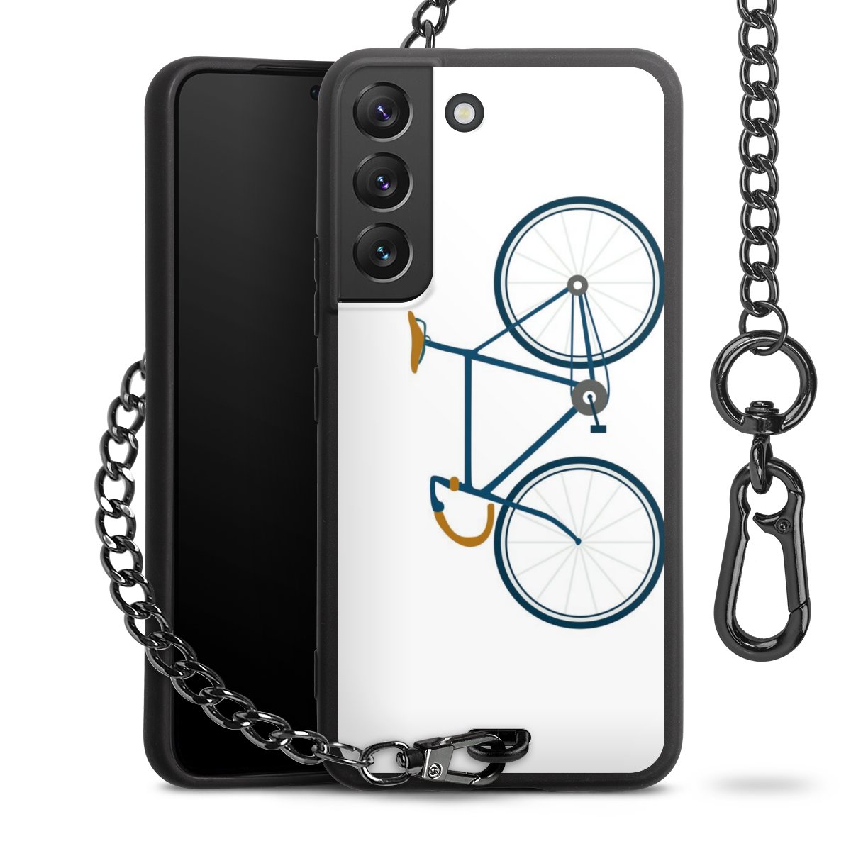 - Mattschwarze Handyhülle mit Metallkette