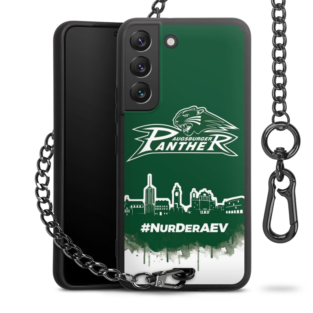 Die mattschwarze Silikon-Handyhülle besteht aus robustem TPU (thermoplastisches Polyurethan). Sie ist flexibel und schützt Dein Smartphone vor Stößen und Kratzern. Die Kette sowie der Karabinerhaken sind aus Metall in Gunmetal-Optik gefertigt. Für dieses Produkt kommen ausschließlich TÜV-geprüfte Materialien zum Einsatz.