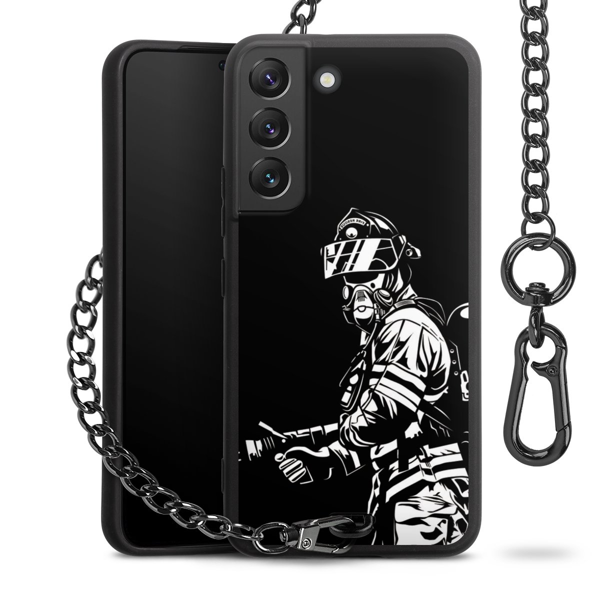 - Mattschwarze Handyhülle mit Metallkette