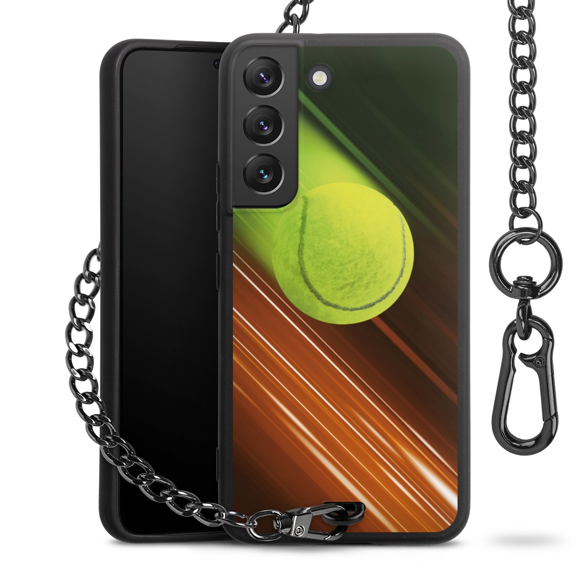 - Mattschwarze Handyhülle mit Metallkette