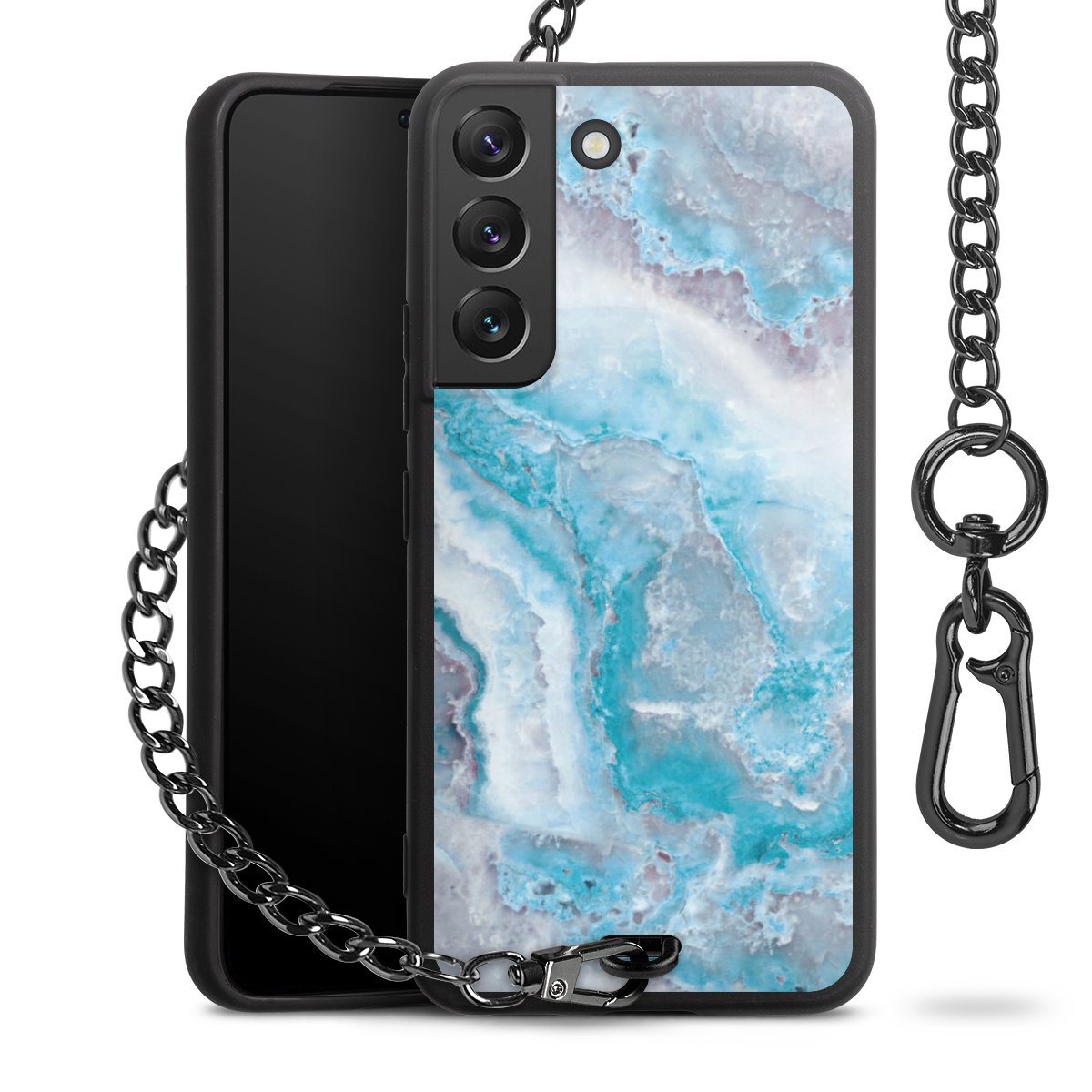 • Mattschwarze Handyhülle mit Metallkette