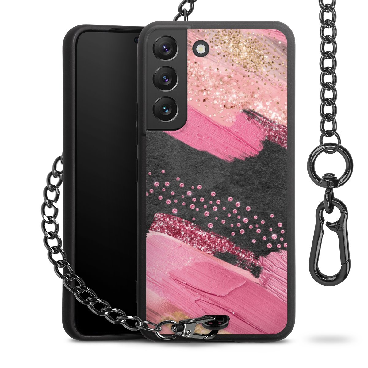 • Mattschwarze Handyhülle mit Metallkette
