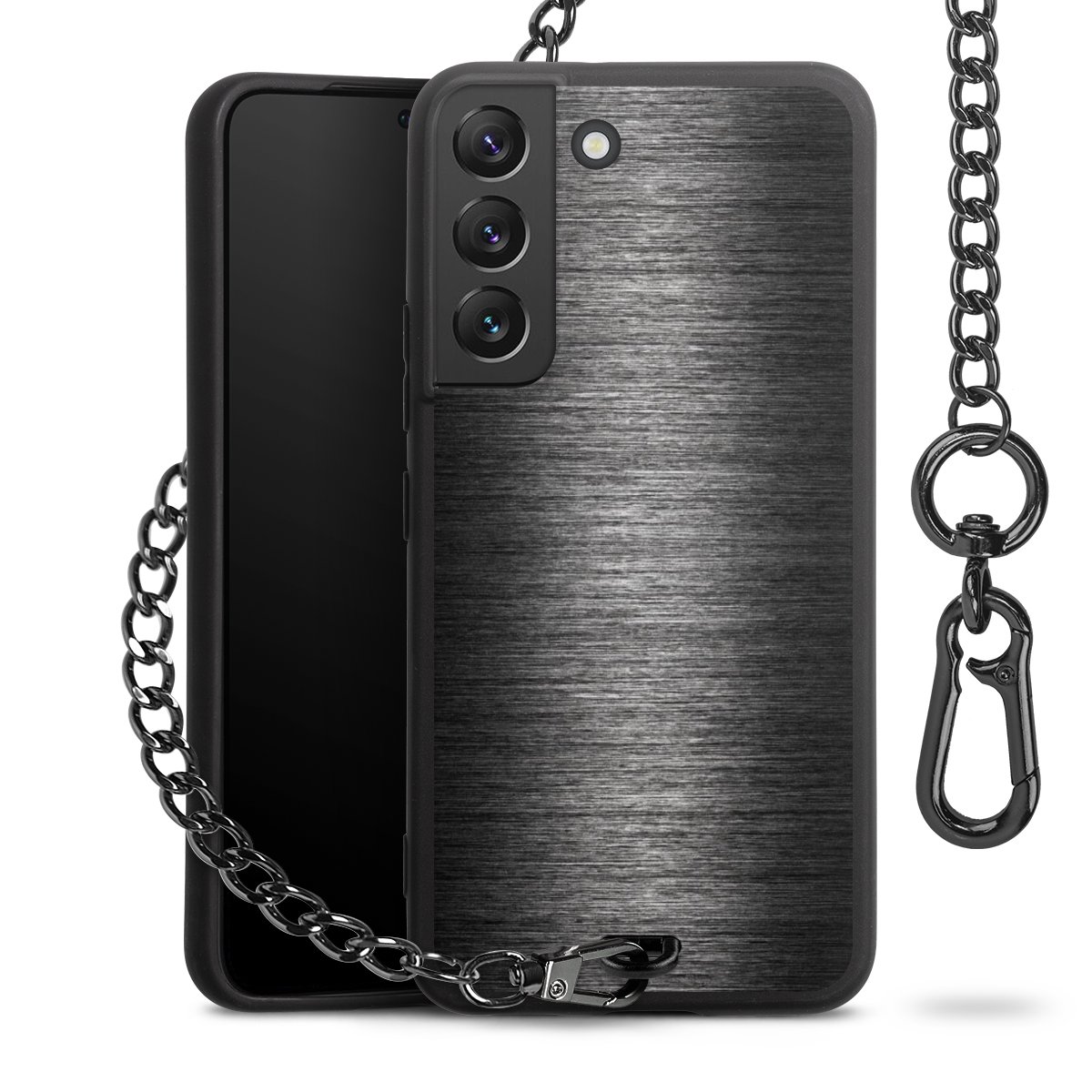 - Mattschwarze Handyhülle mit Metallkette