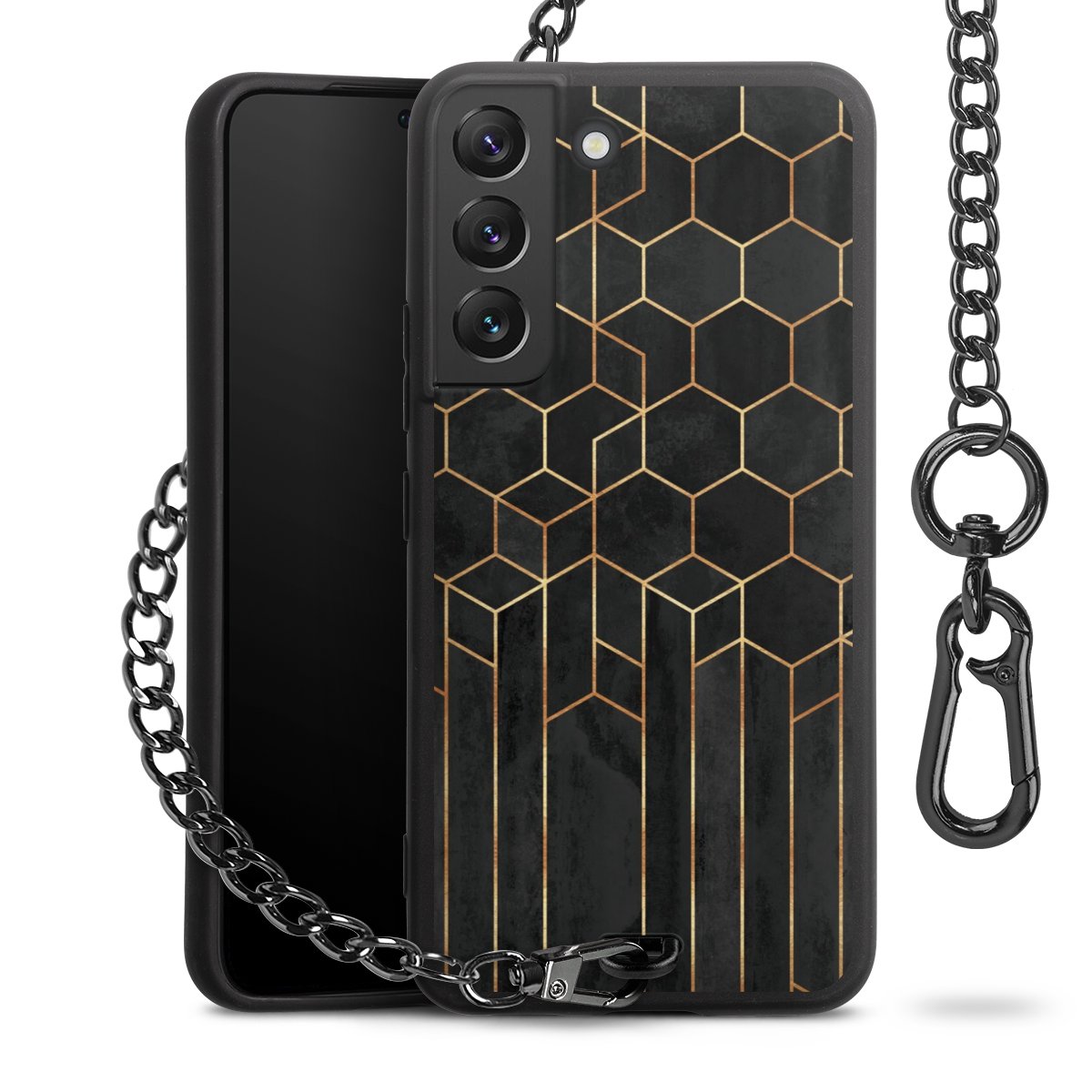 • Mattschwarze Handyhülle mit Metallkette