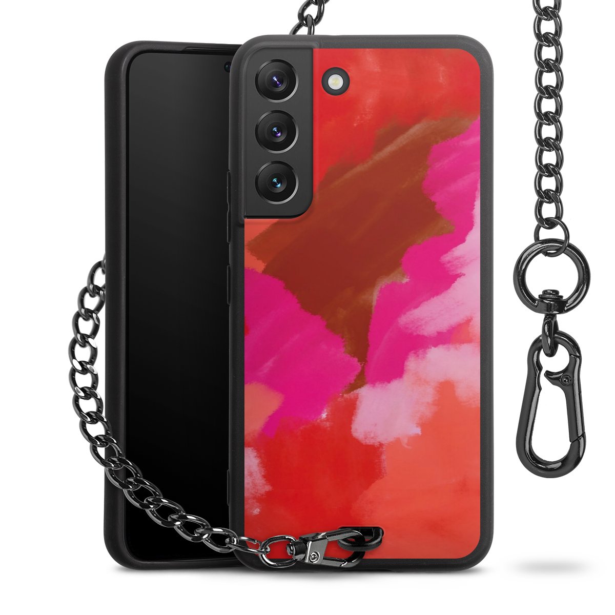 • Mattschwarze Handyhülle mit Metallkette