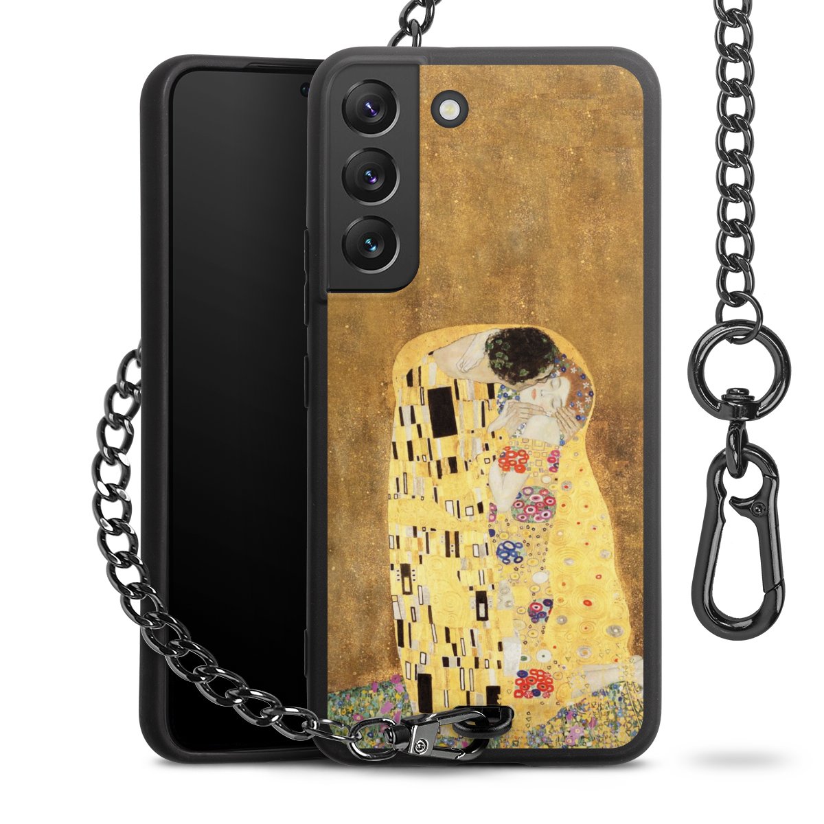 • Mattschwarze Handyhülle mit Metallkette