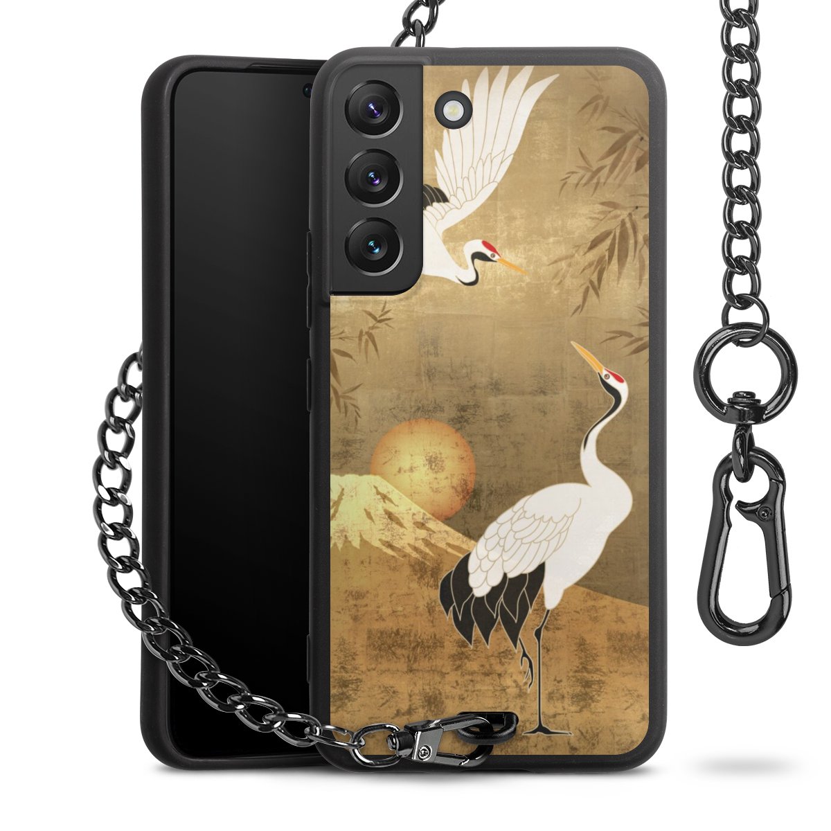 • Mattschwarze Handyhülle mit Metallkette