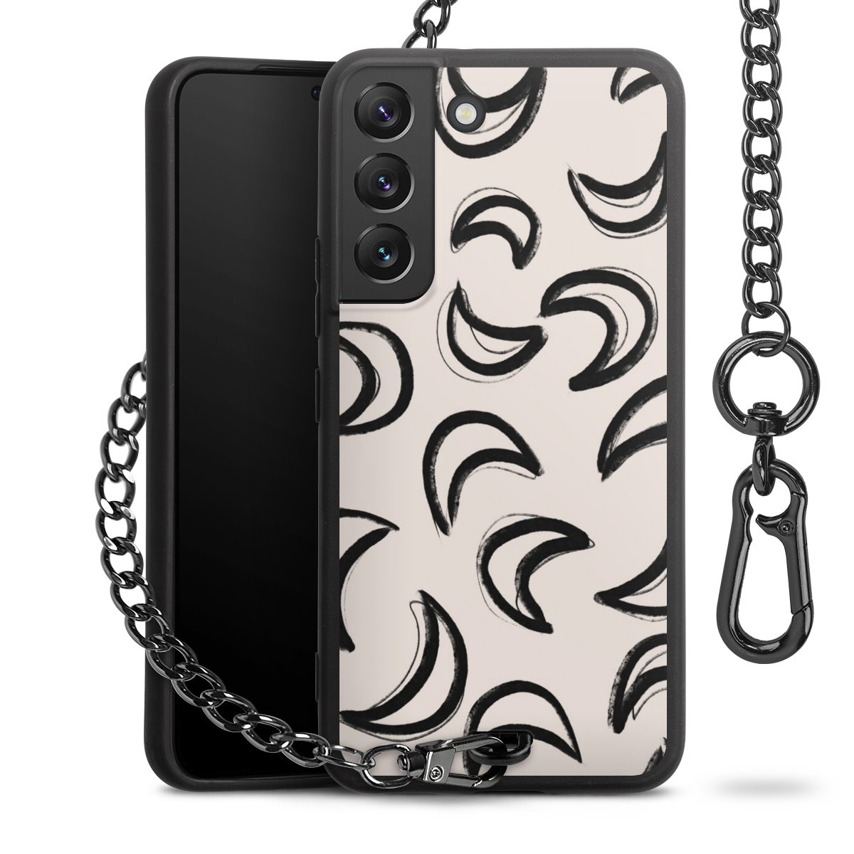 • Mattschwarze Handyhülle mit Metallkette