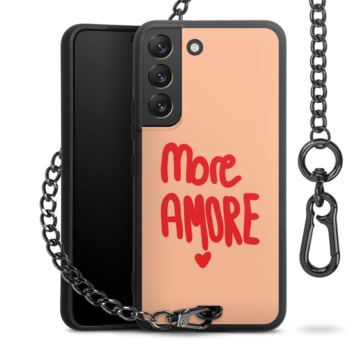 • Mattschwarze Handyhülle mit Metallkette