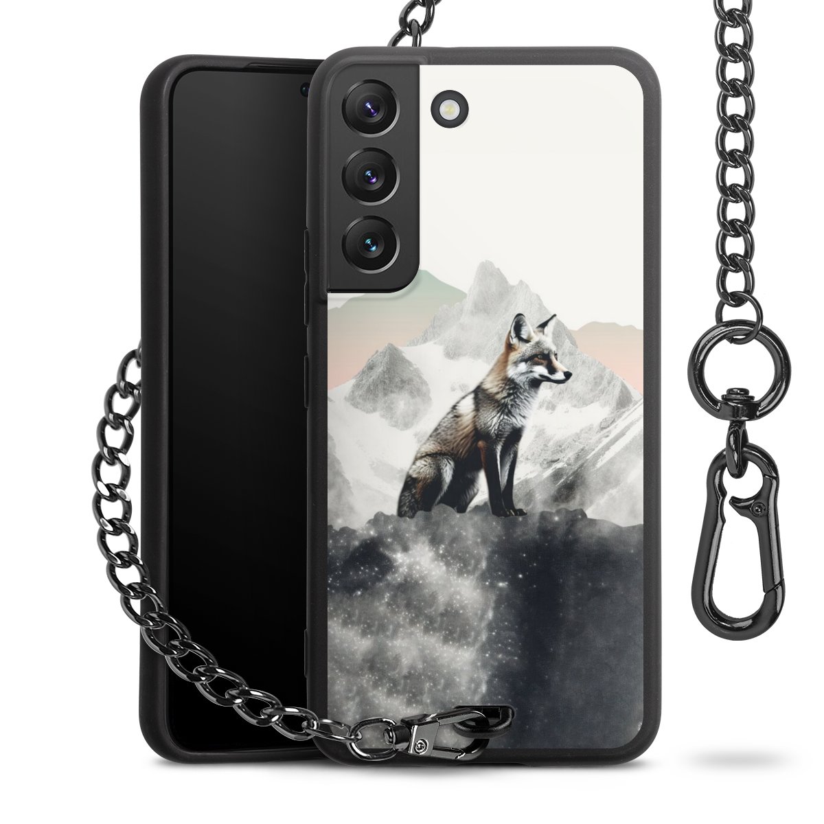 • Mattschwarze Handyhülle mit Metallkette