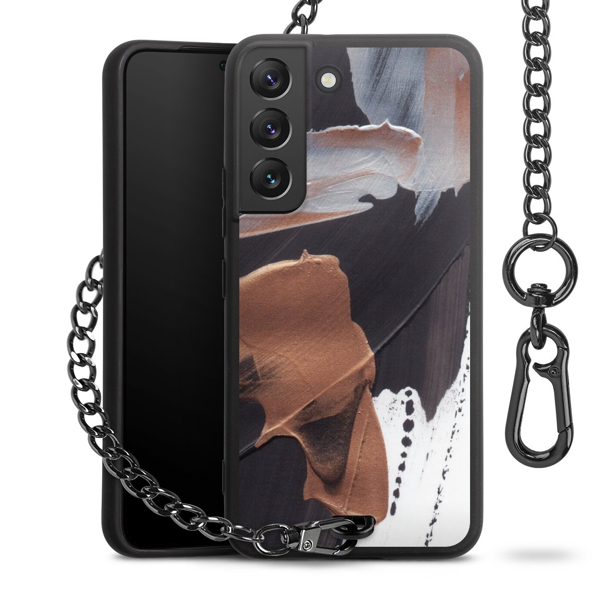 • Mattschwarze Handyhülle mit Metallkette