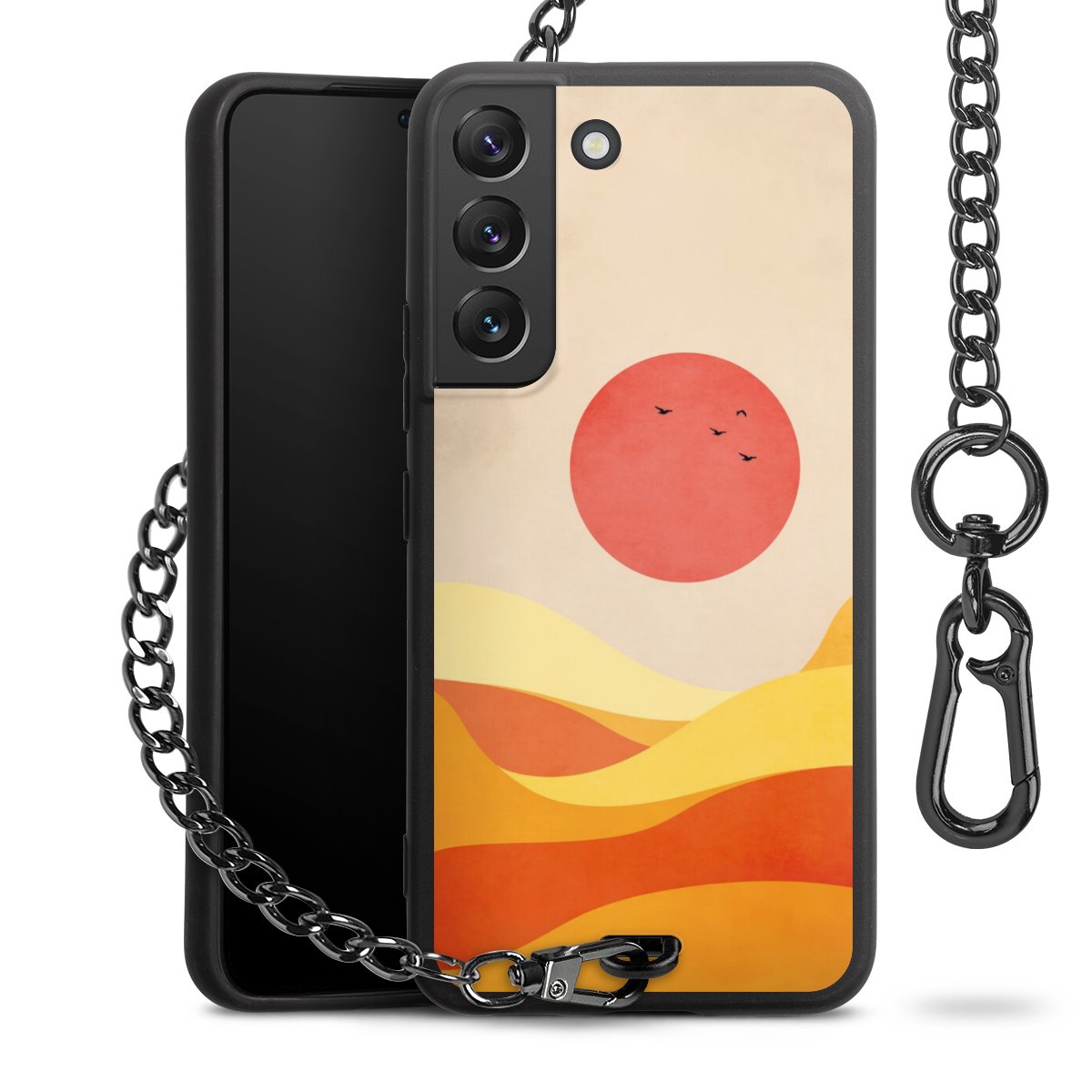• Mattschwarze Handyhülle mit Metallkette