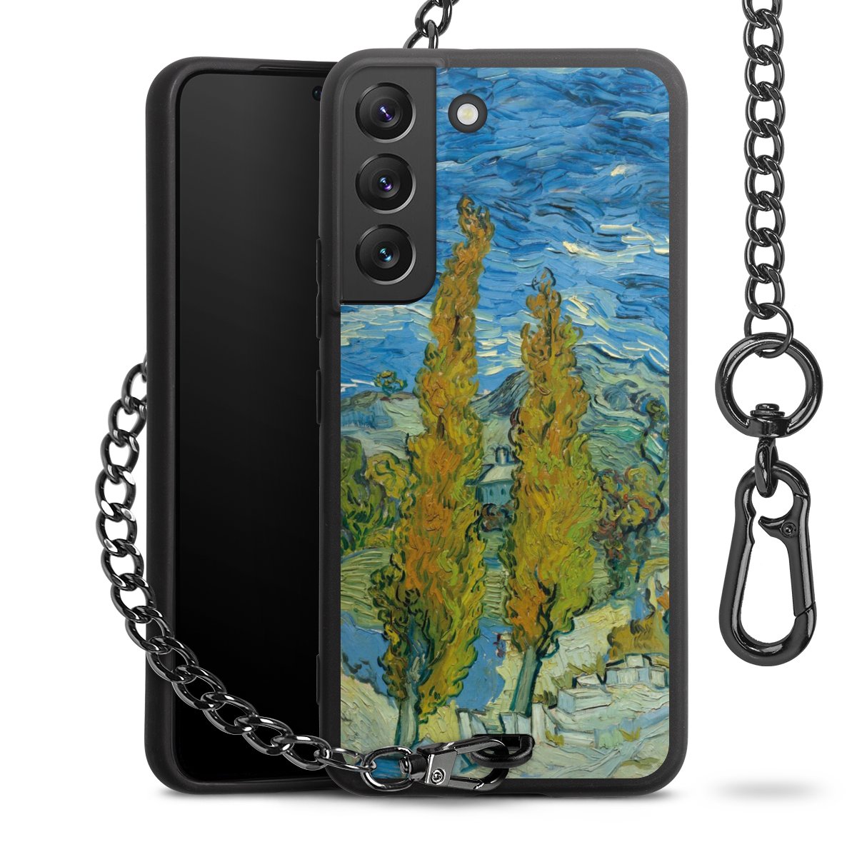 - Mattschwarze Handyhülle mit Metallkette