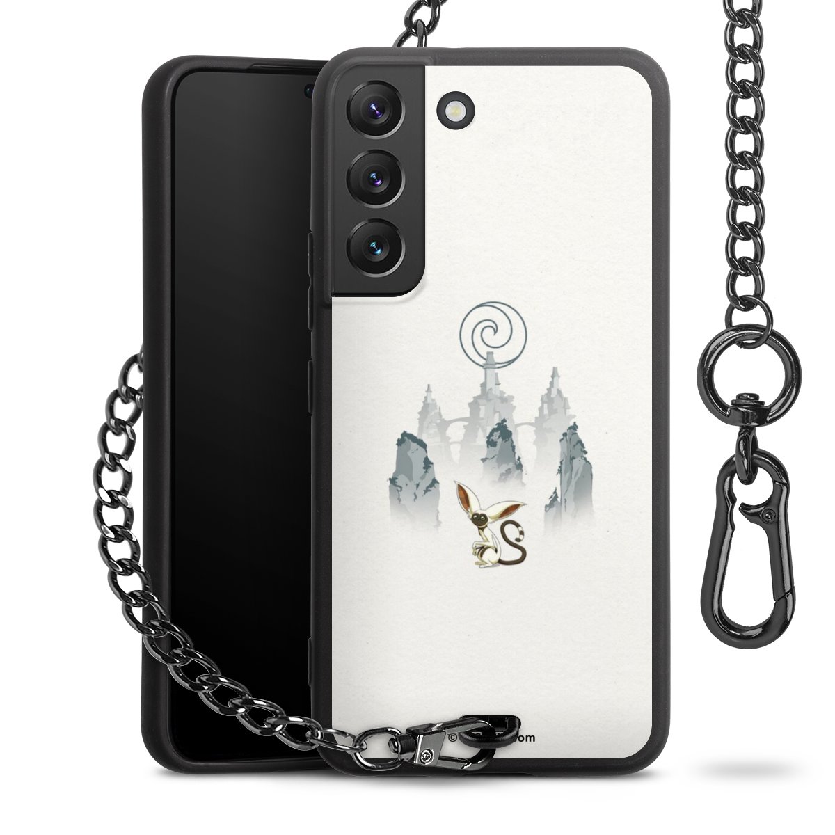 Die Handyhülle verfügt über eine mittig am unteren Rand platzierte Öse, an der die Metallkette stabil befestigt ist. Bestelle die Hülle einfach für Dein Smartphone-Modell, dann passt sie wie angegossen und Du brauchst sie bloß einmal anzudrücken. Handy in die Tasche, Karabiner an den Hosenbund – schon kann die Party starten.