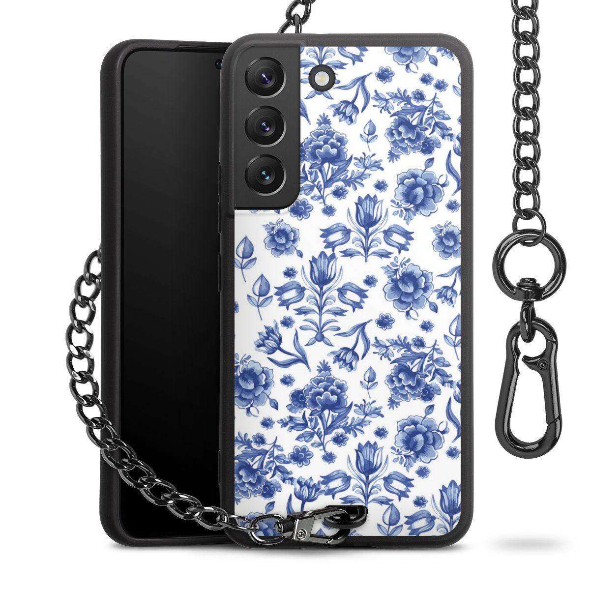 - Mattschwarze Handyhülle mit Metallkette