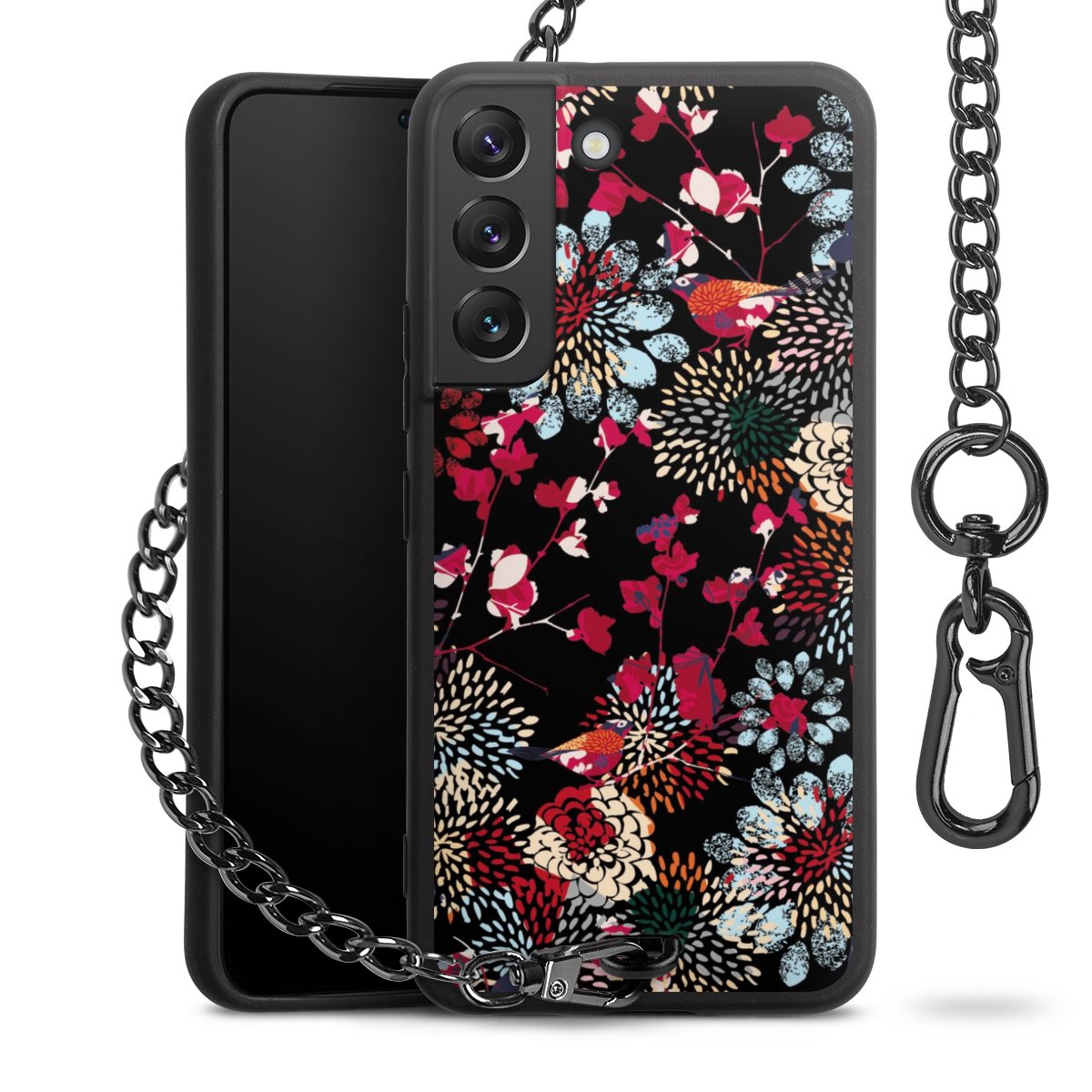 - Mattschwarze Handyhülle mit Metallkette