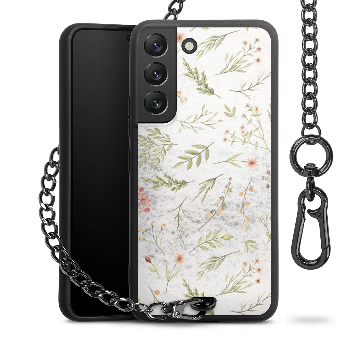 - Mattschwarze Handyhülle mit Metallkette