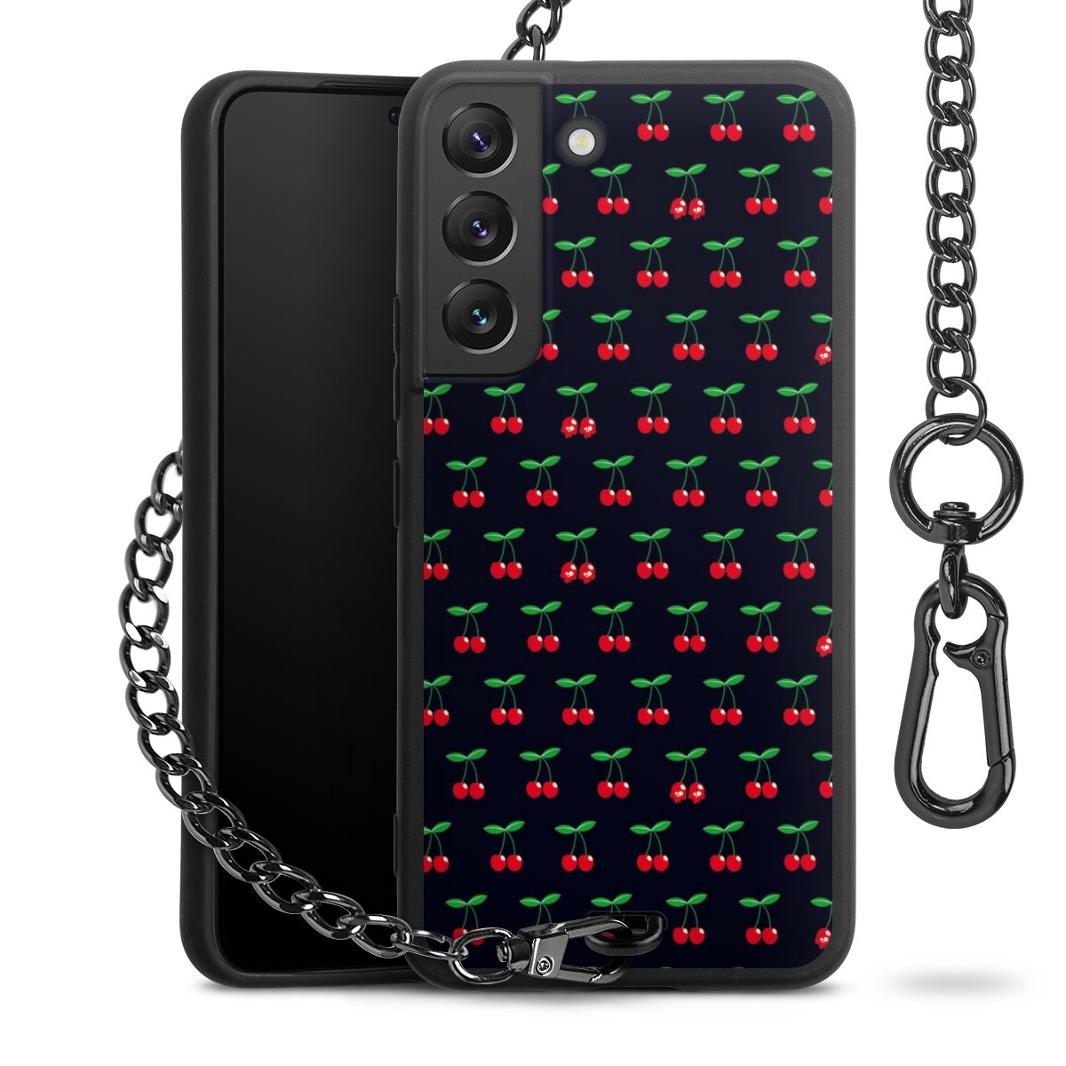 - Mattschwarze Handyhülle mit Metallkette