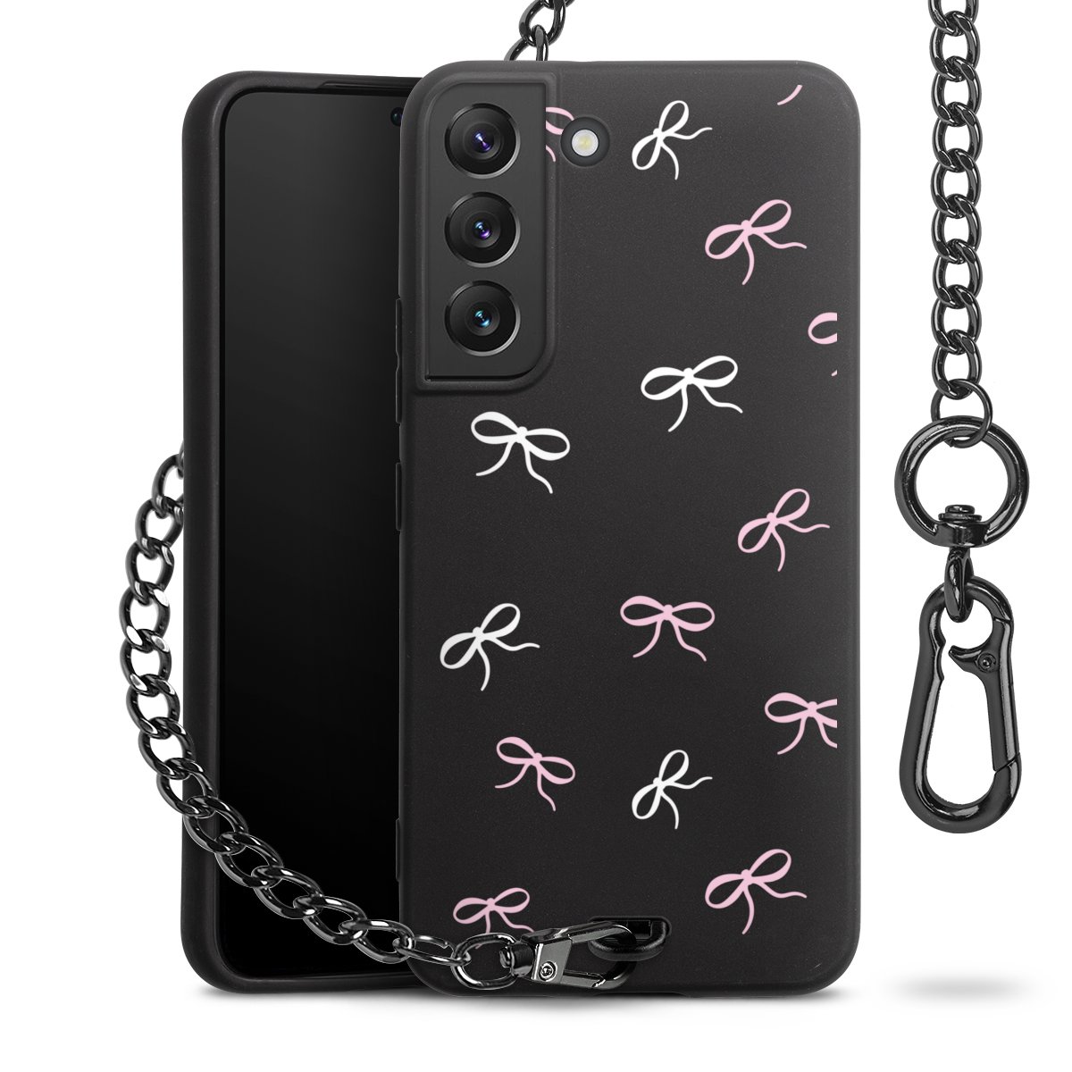 - Mattschwarze Handyhülle mit Metallkette