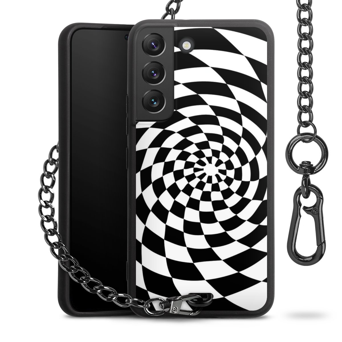 • Mattschwarze Handyhülle mit Metallkette