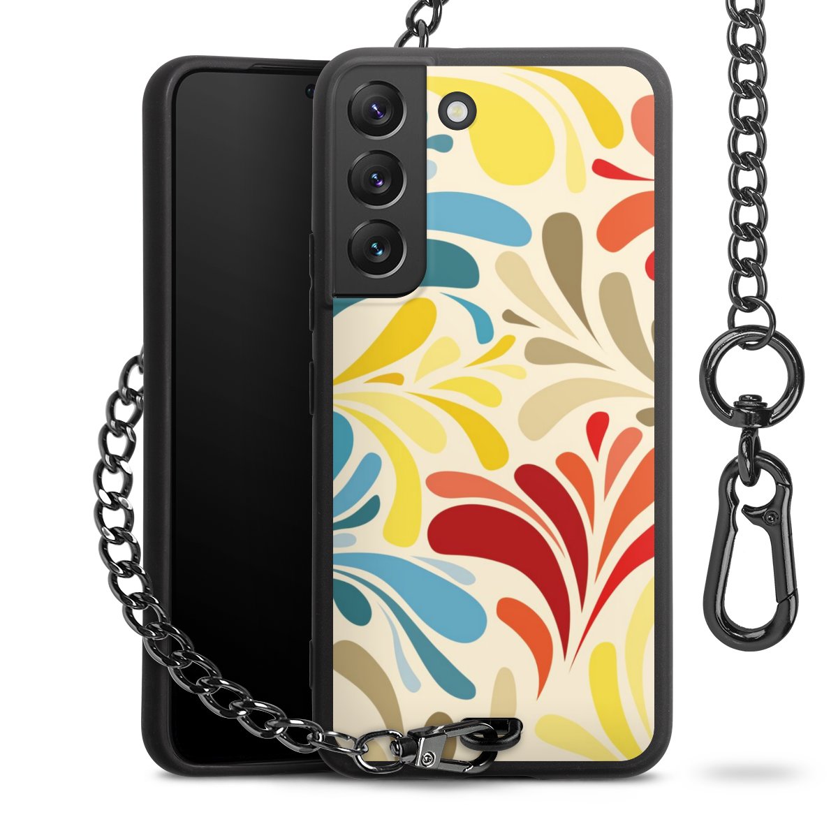 - Mattschwarze Handyhülle mit Metallkette